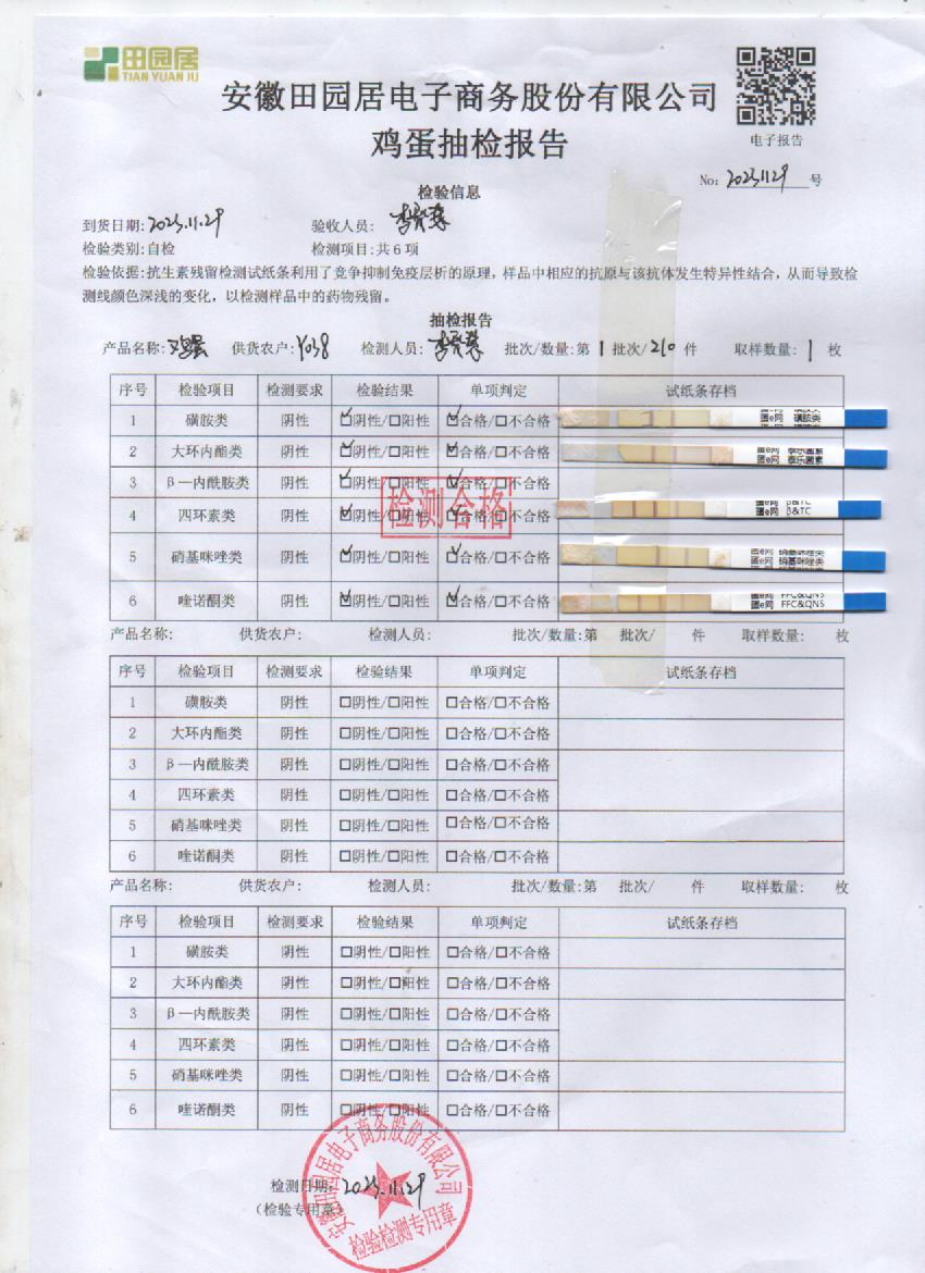 2023年11月29日鸡蛋检测报告