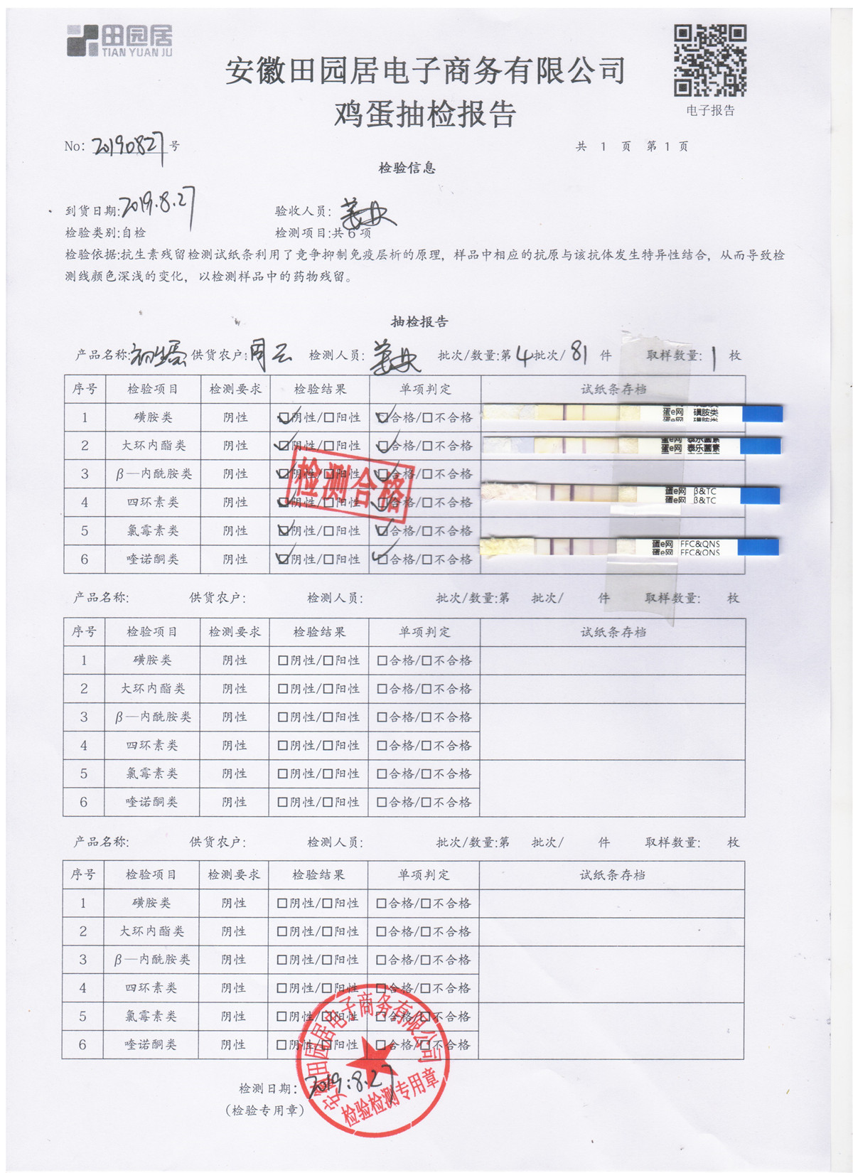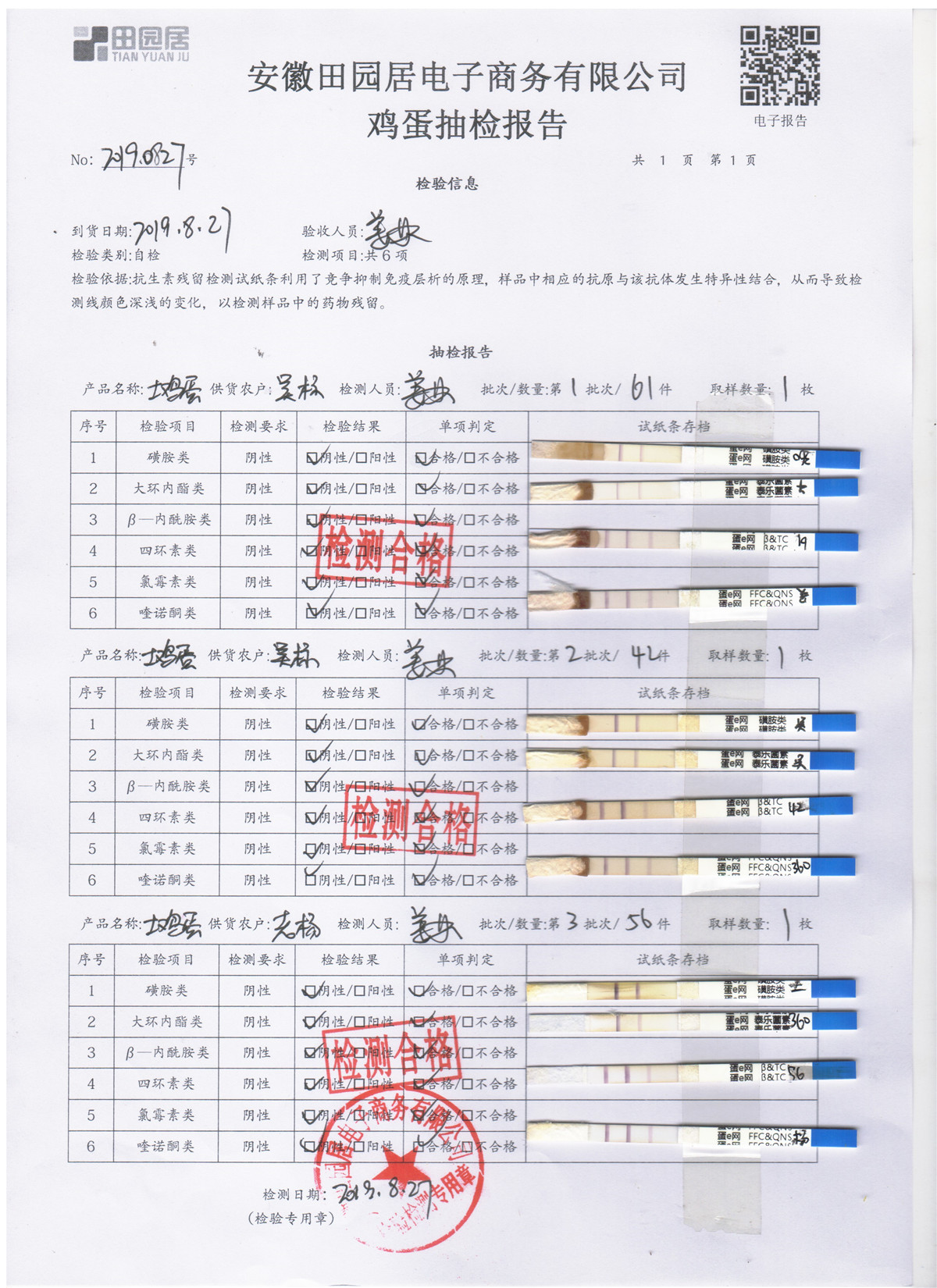 2019年8月27日鸡蛋自检报告