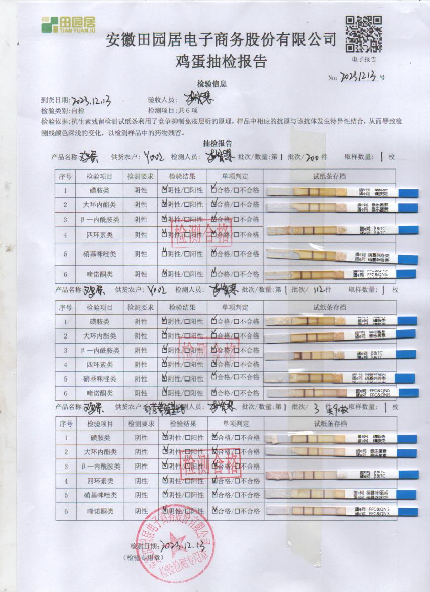 2023年12月13日鸡蛋检测报告