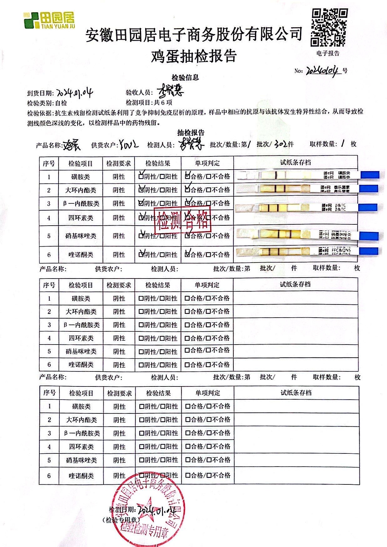 2023年01月04日鸡蛋检测报告