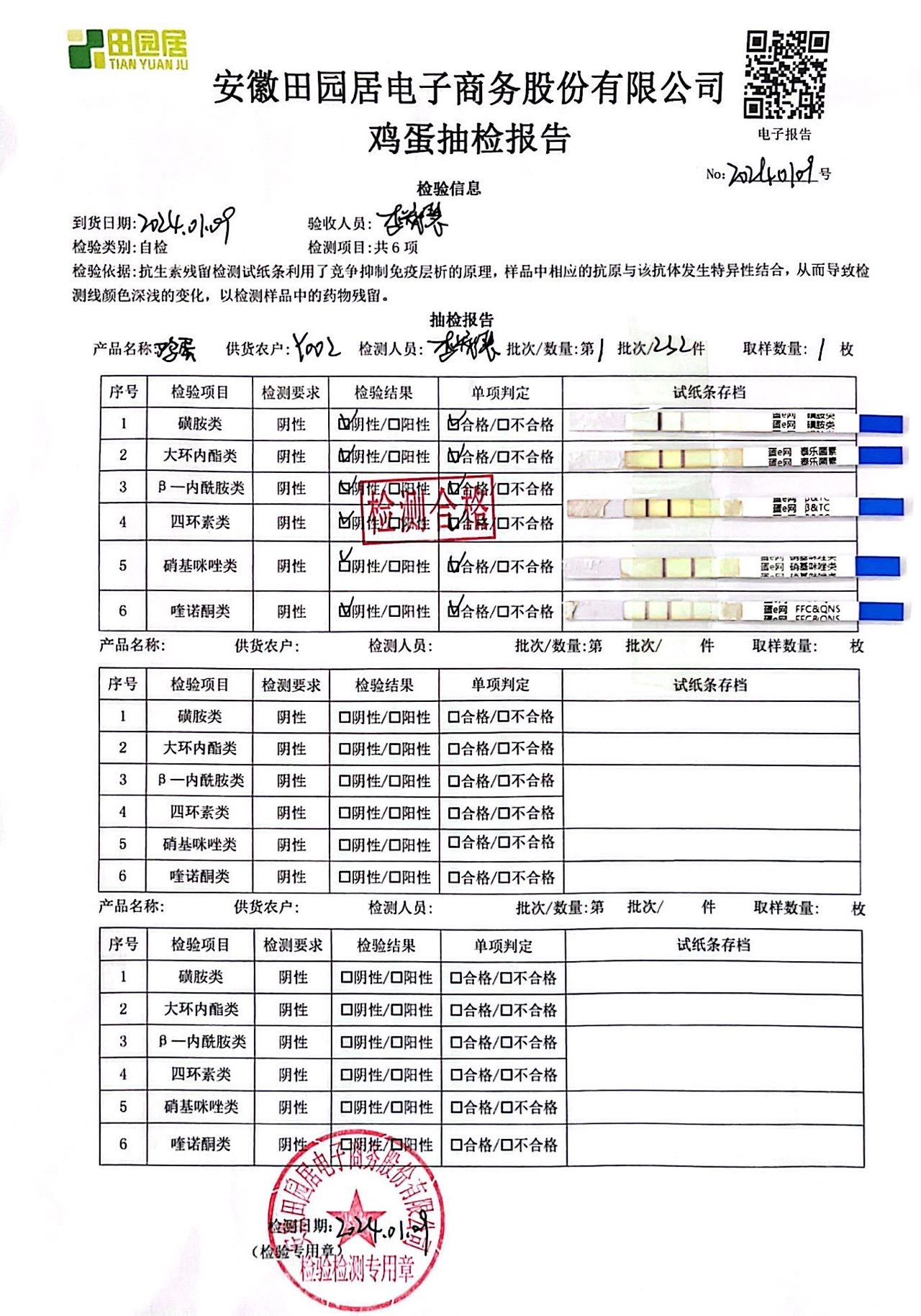 2024年01月09日鸡蛋检测报告