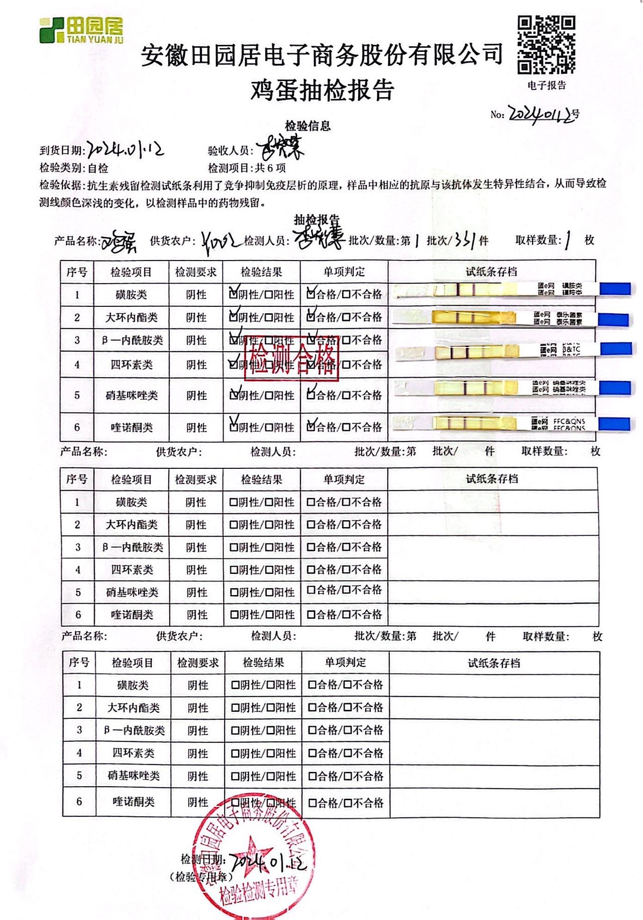 2024年01月12日鸡蛋检测报告