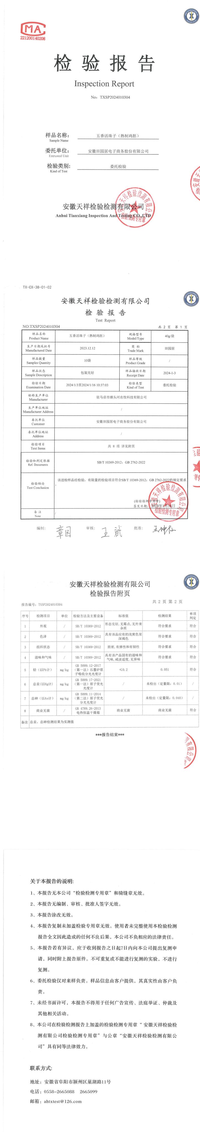 2024年01月03日五香活珠子(熟制鸡胚)检测报告