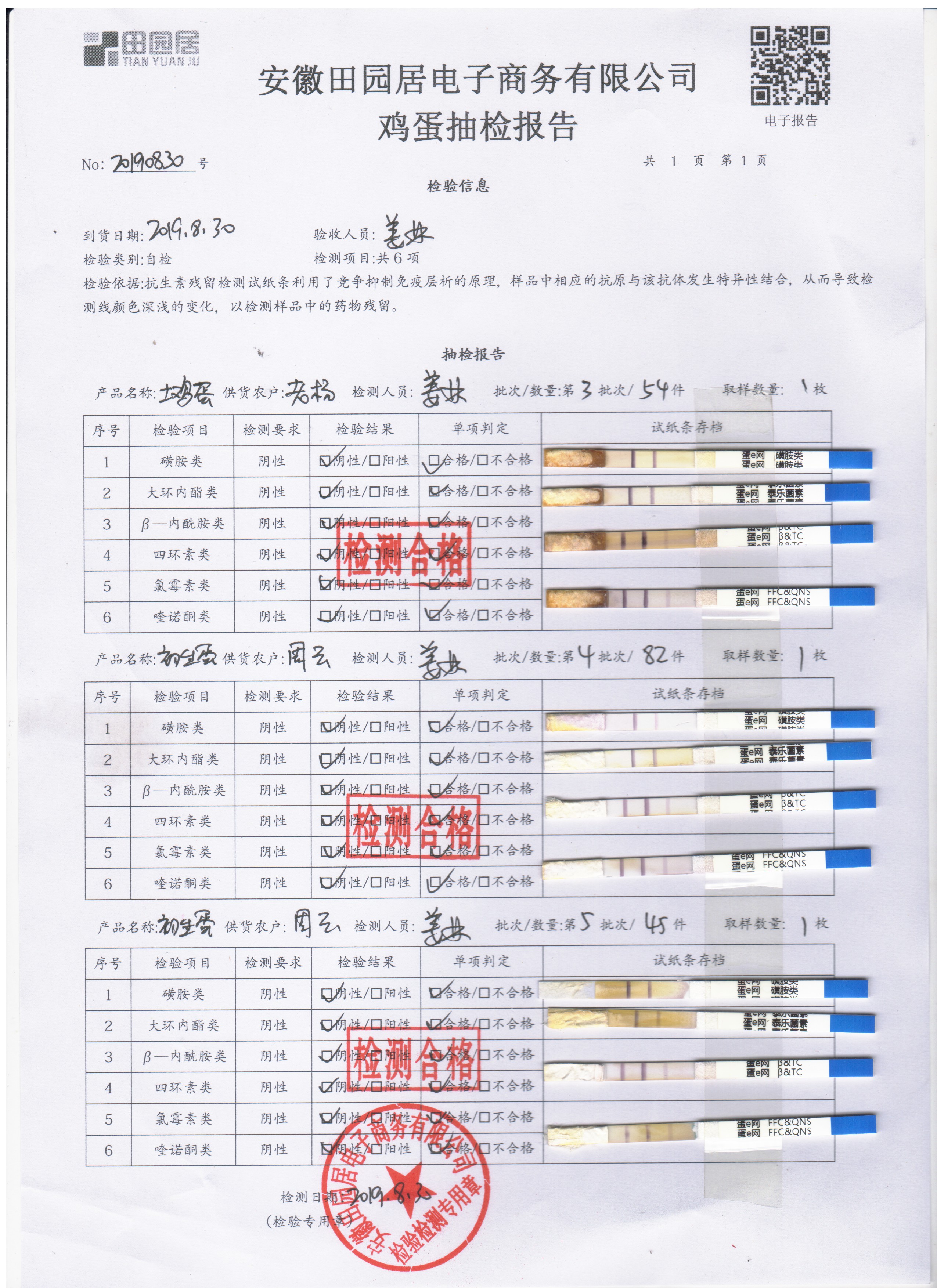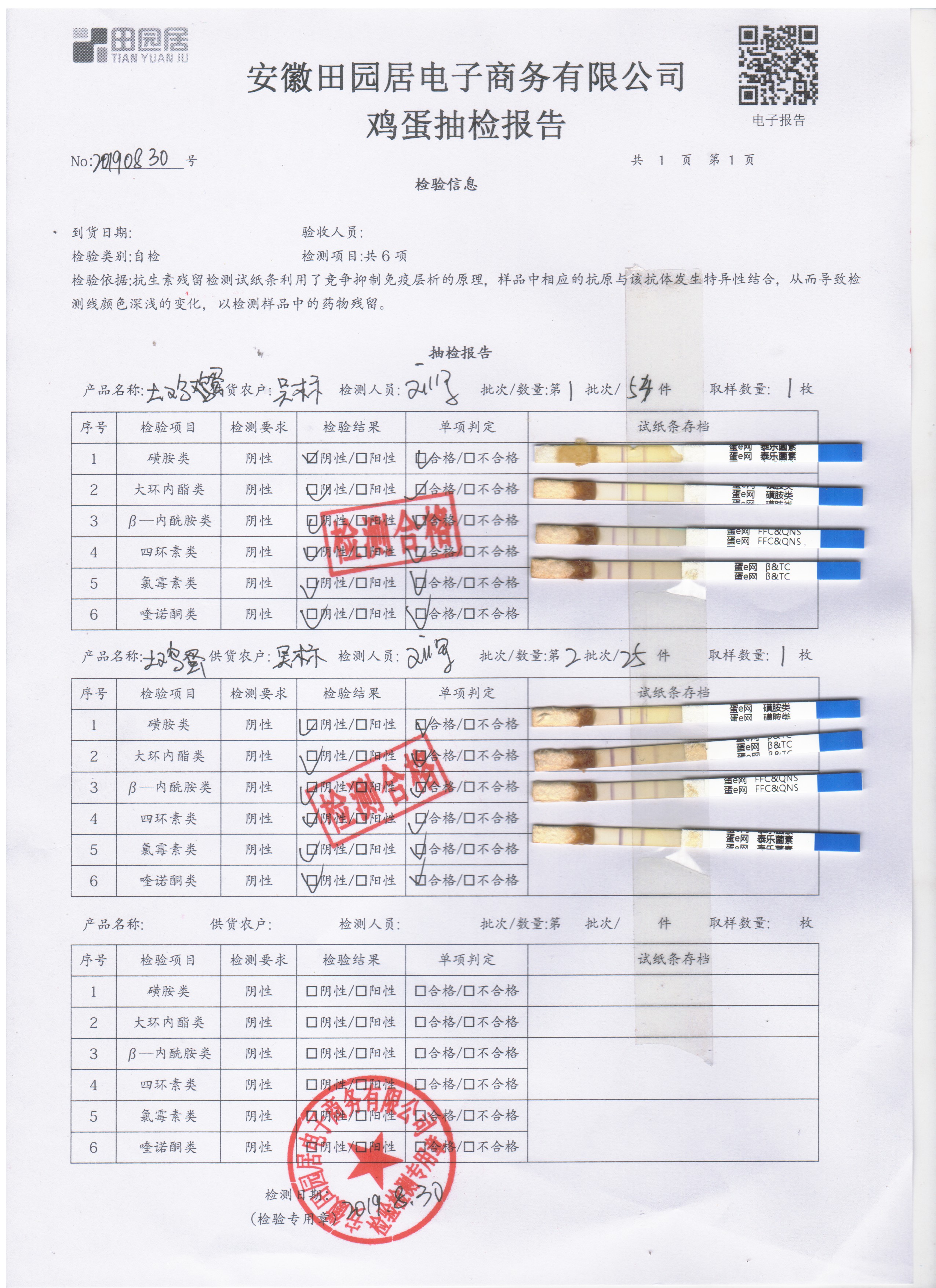 2019年8月30日鸡蛋自检报告