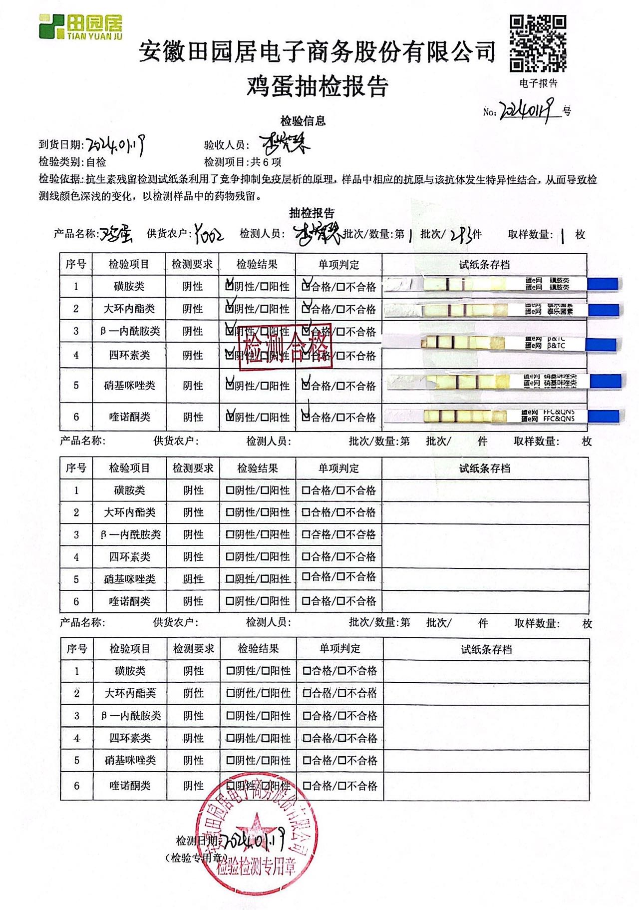 2024年01月19日鸡蛋检测报告
