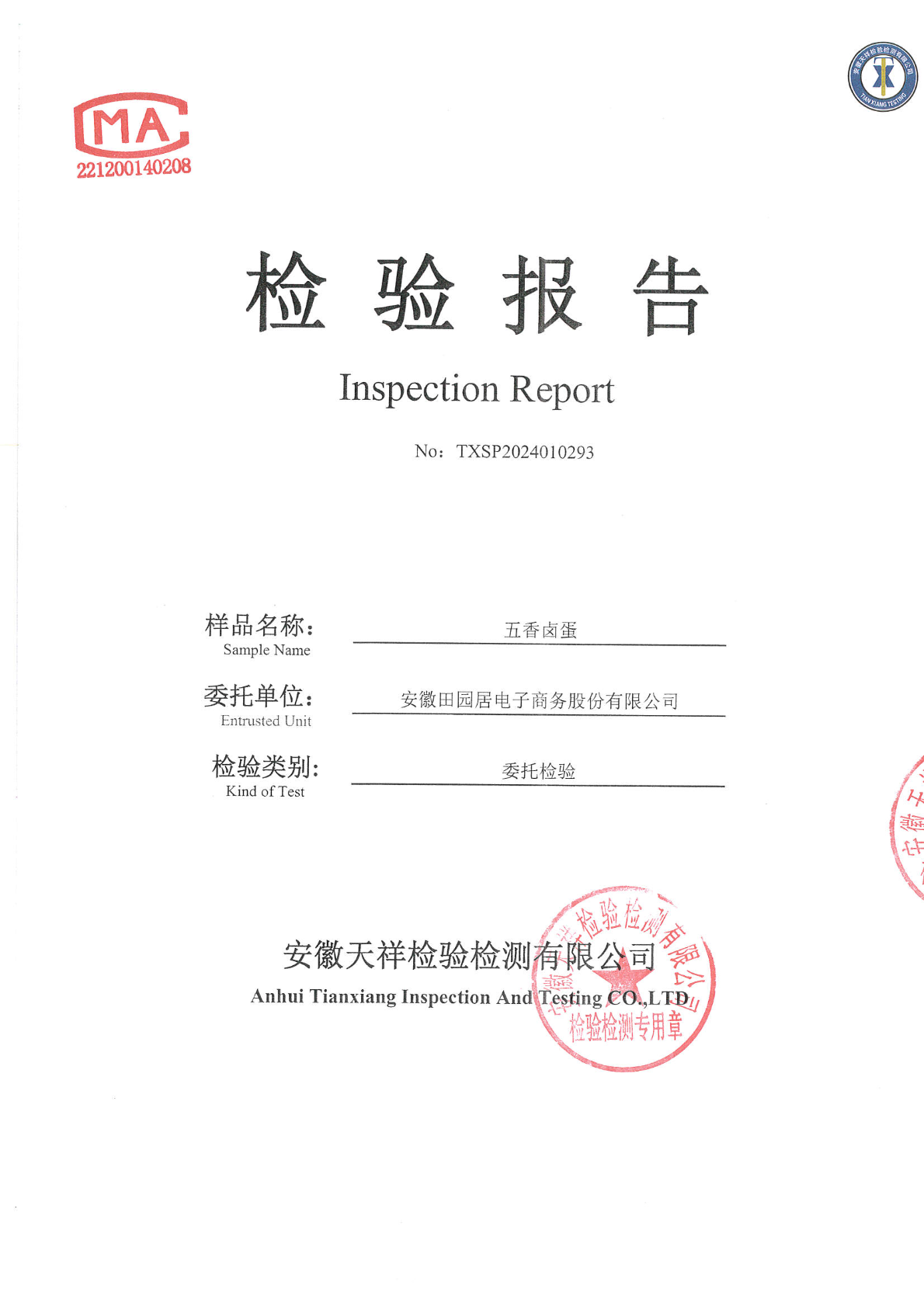 2024年01月03日五香卤蛋检测报告