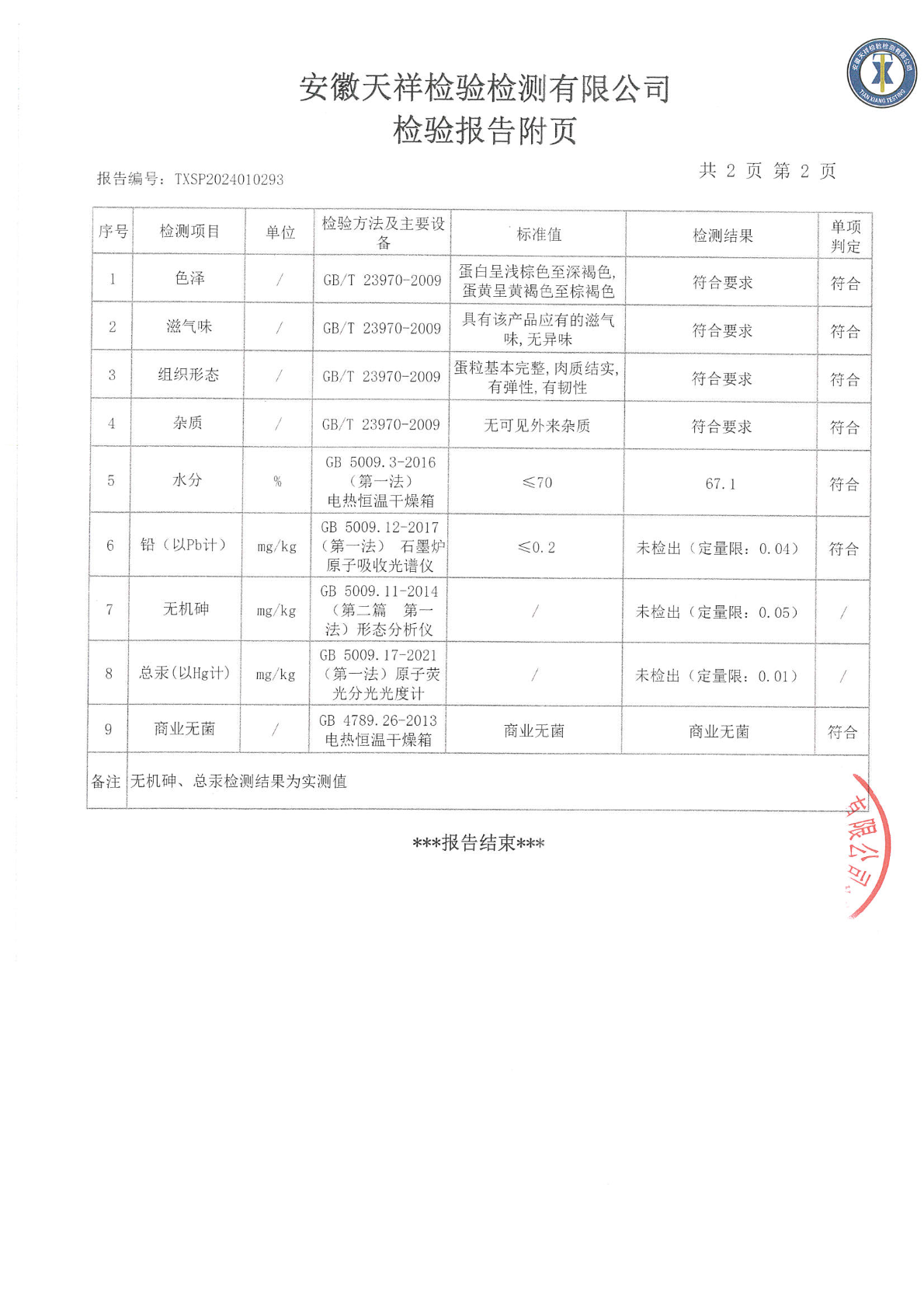2024年02月20日鸡蛋检测报告