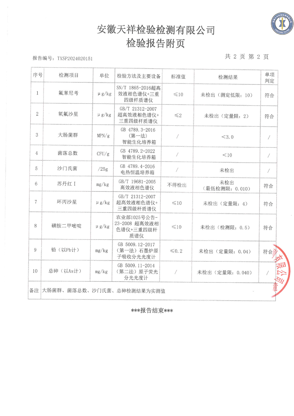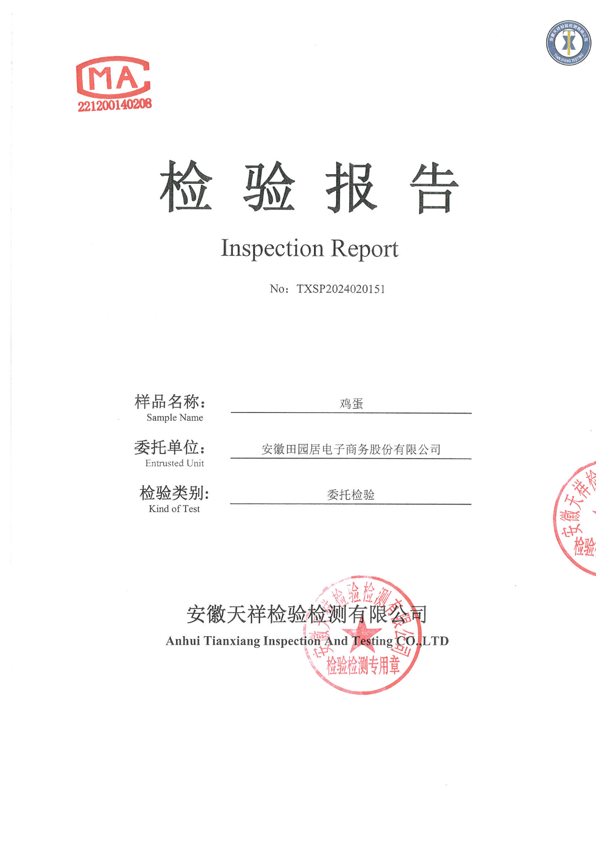 2024年02月20日鸡蛋检测报告