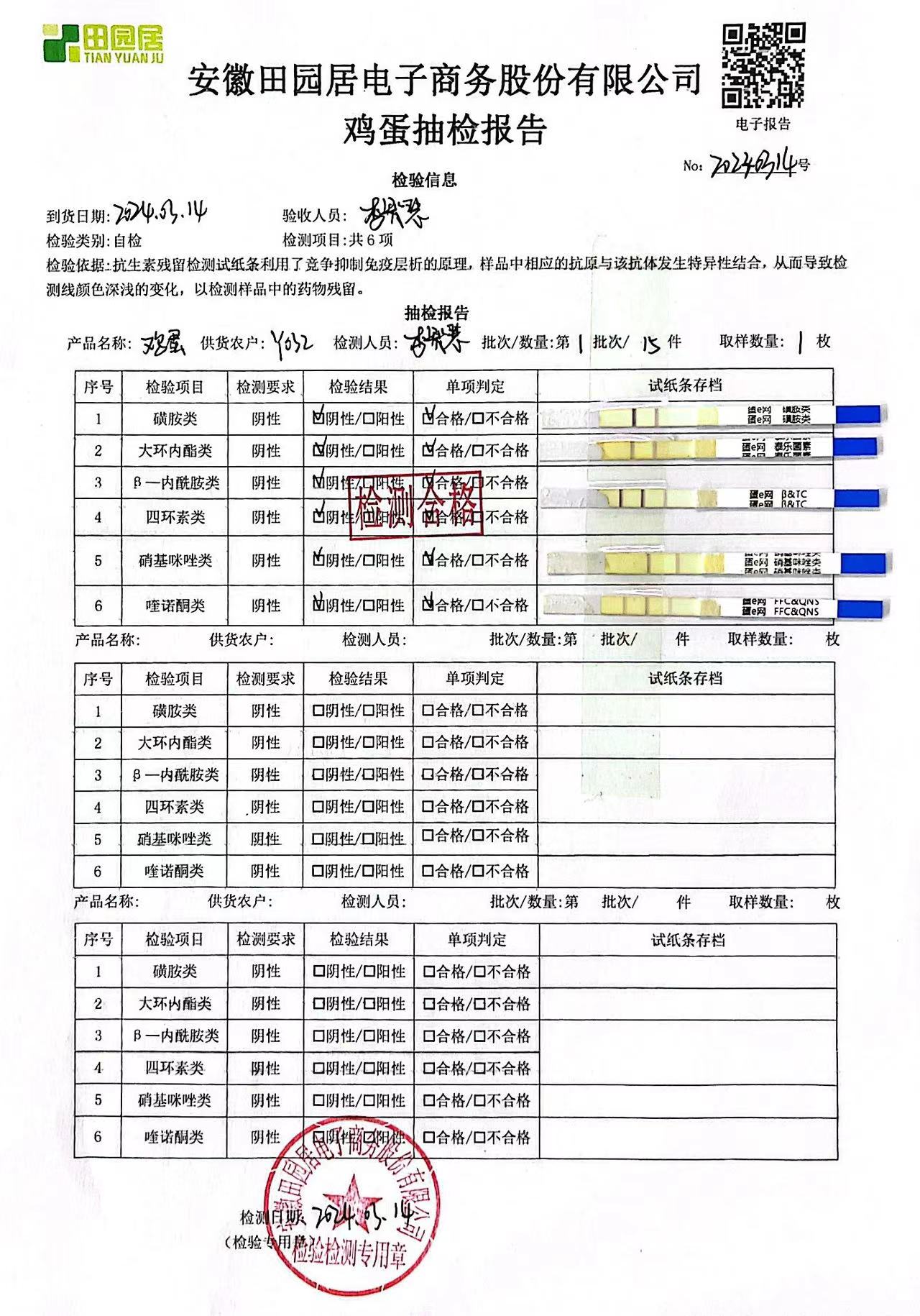 2024年03月15日鸡蛋检测报告