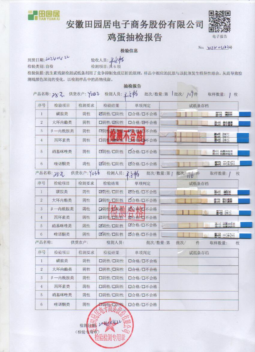 2024年4月22号安全鲜鸡蛋检测报告