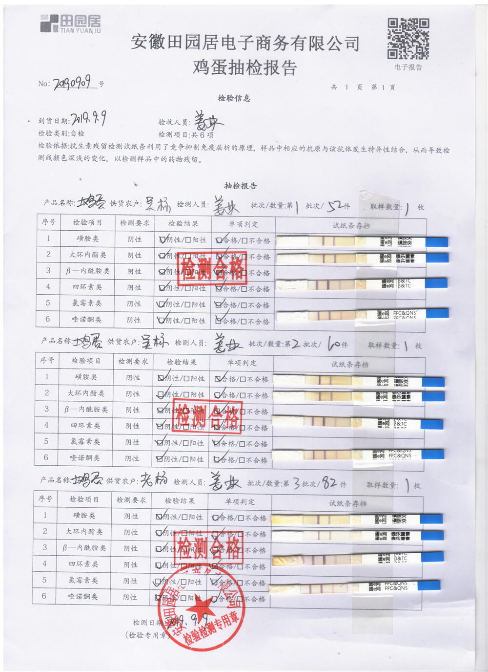 2019年9月9日鸡蛋自检报告