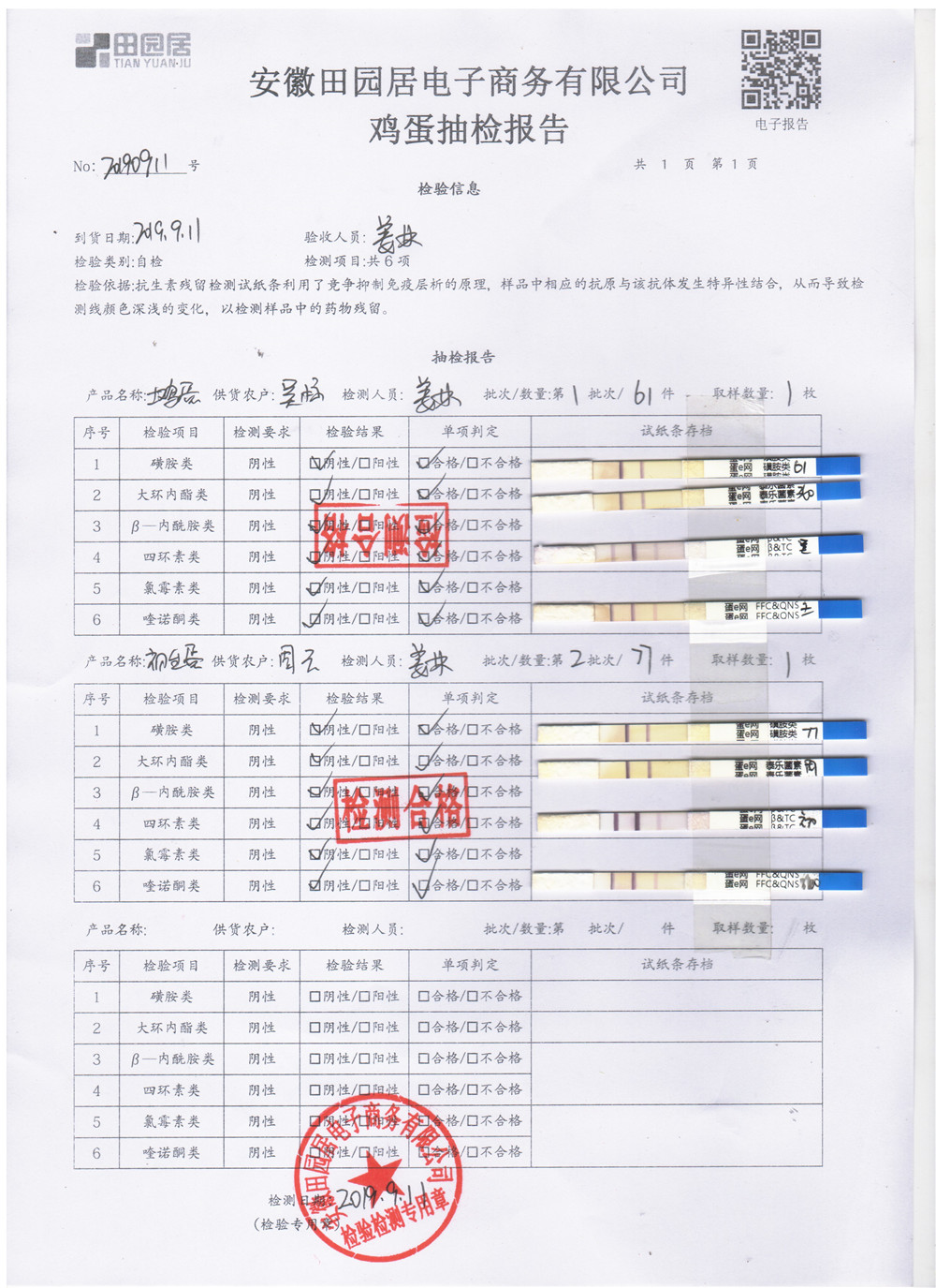 2019年9月11日鸡蛋自检报告