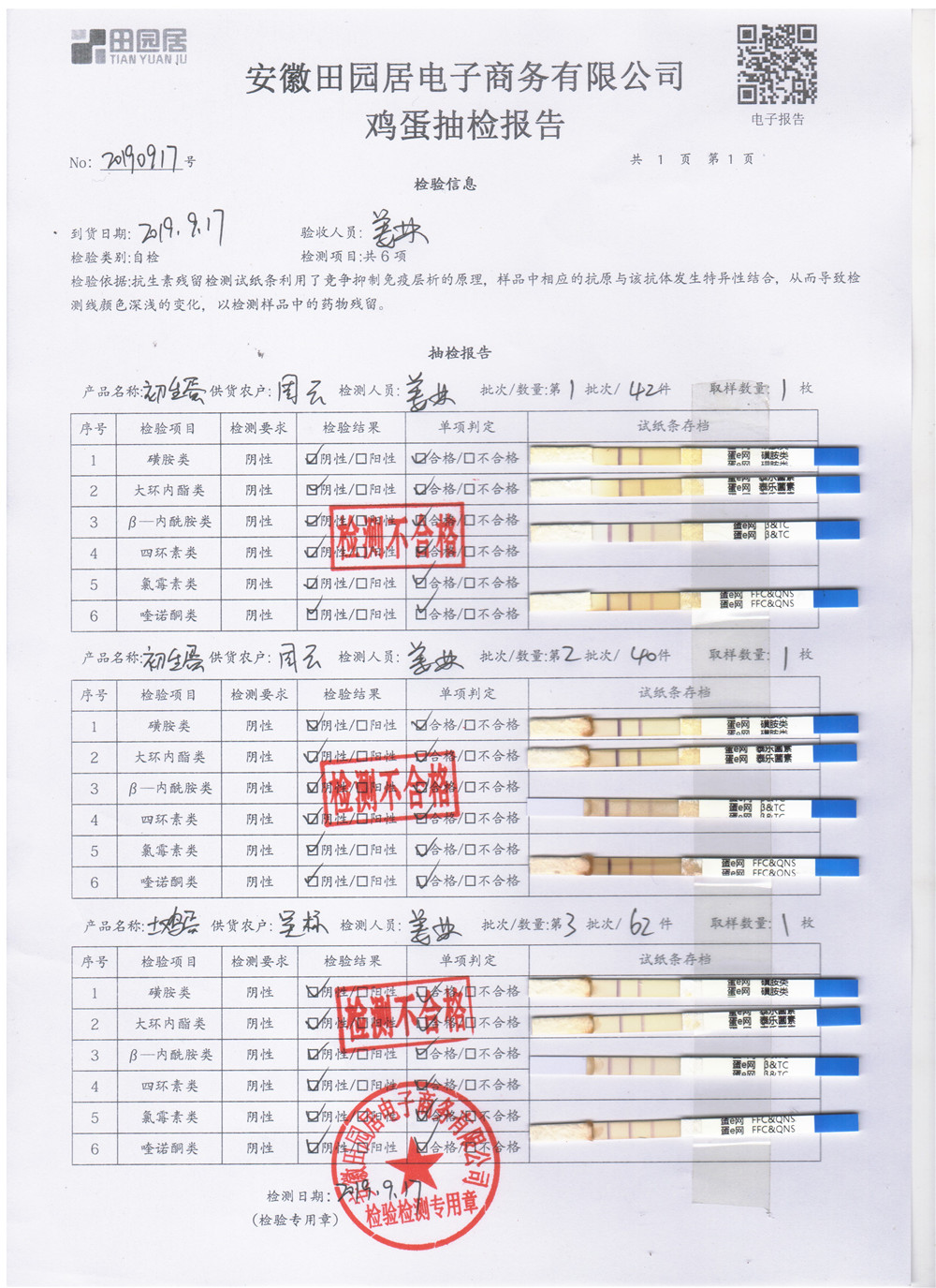 2019年9月17日鸡蛋自检报告
