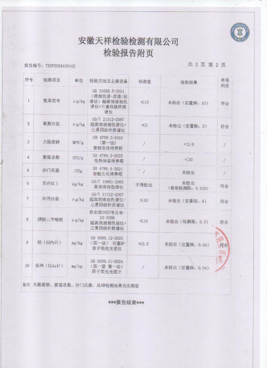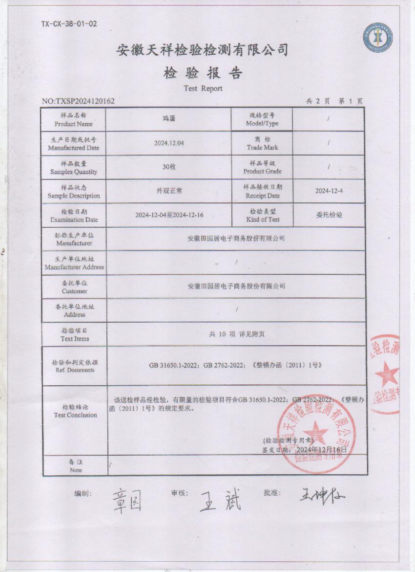 2024年12月份鲜鸡蛋检测报告