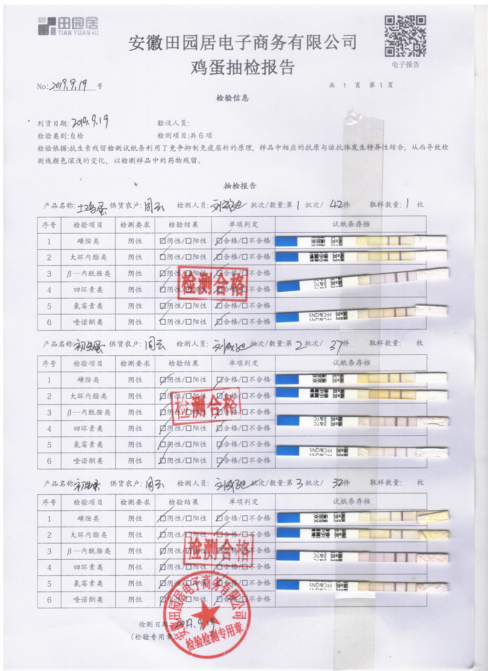 2019年9月19日鸡蛋自检报告