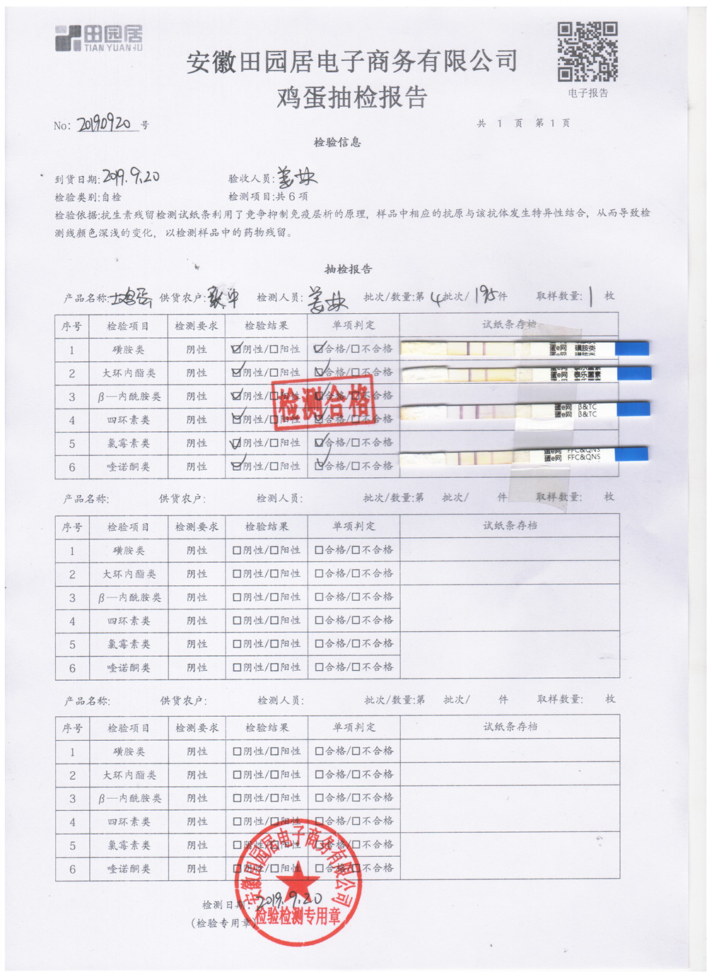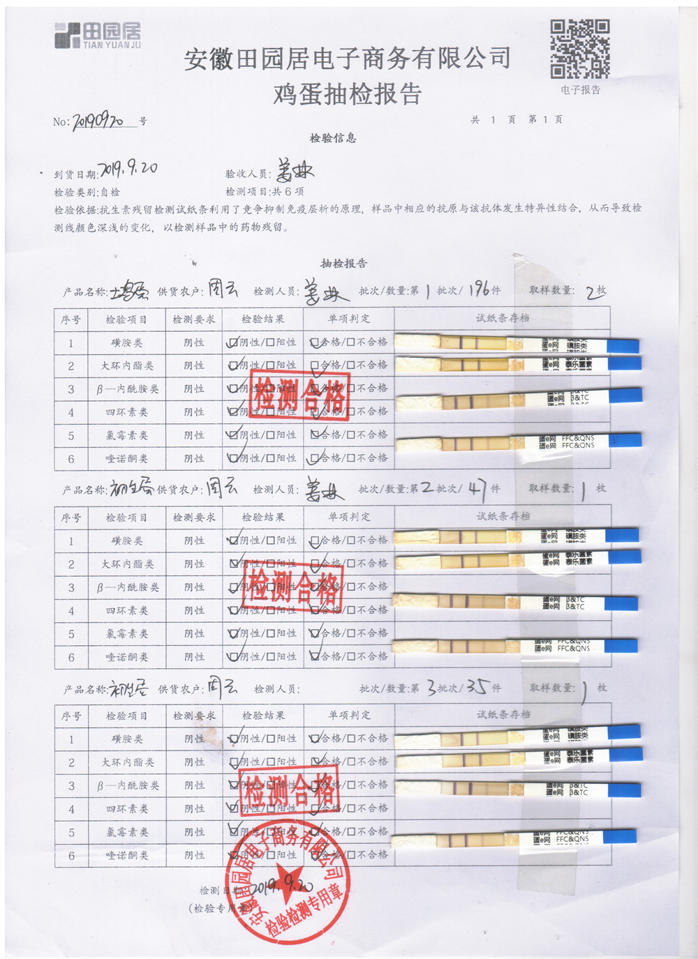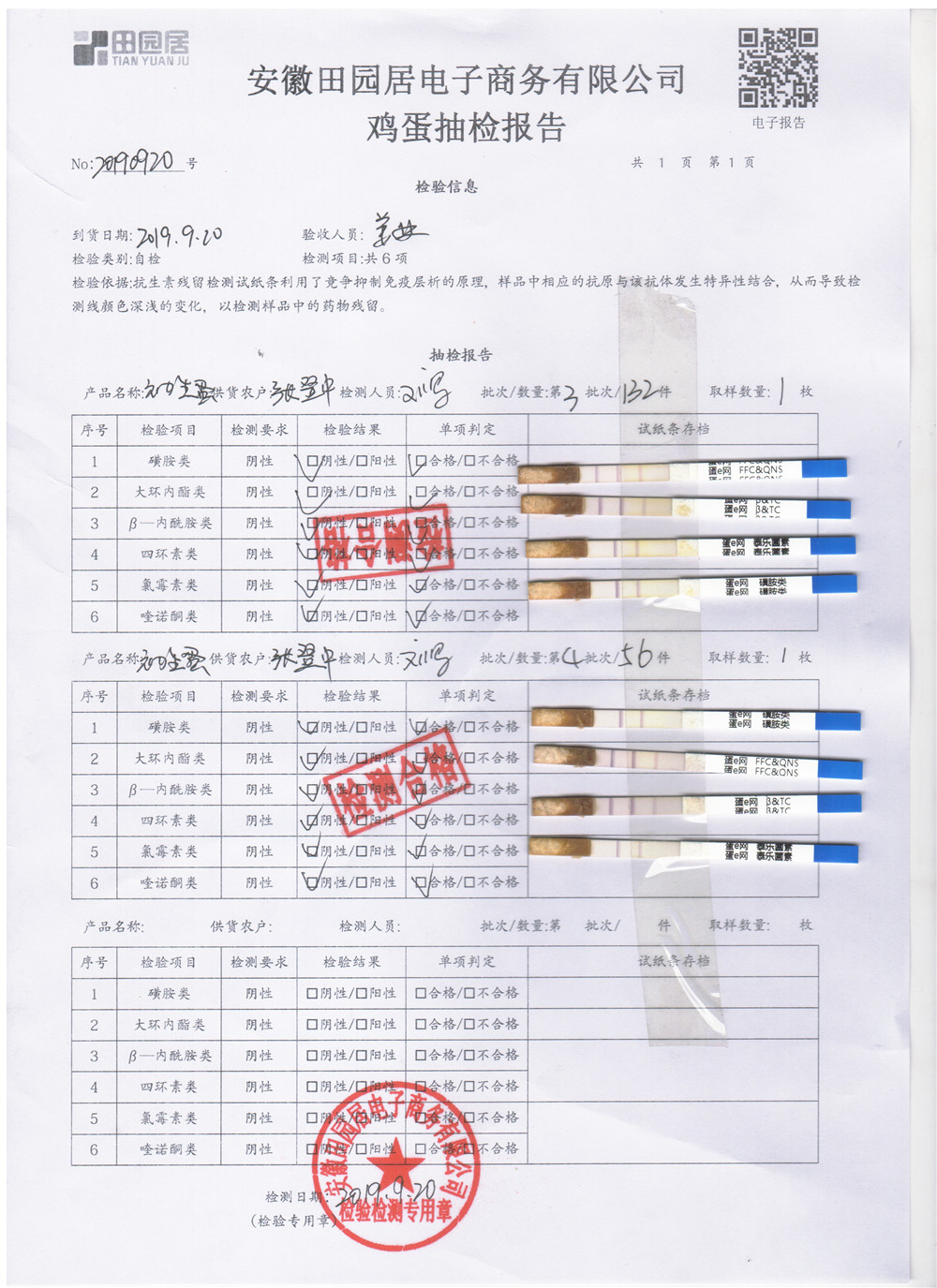 2019年9月20日鸡蛋自检报告
