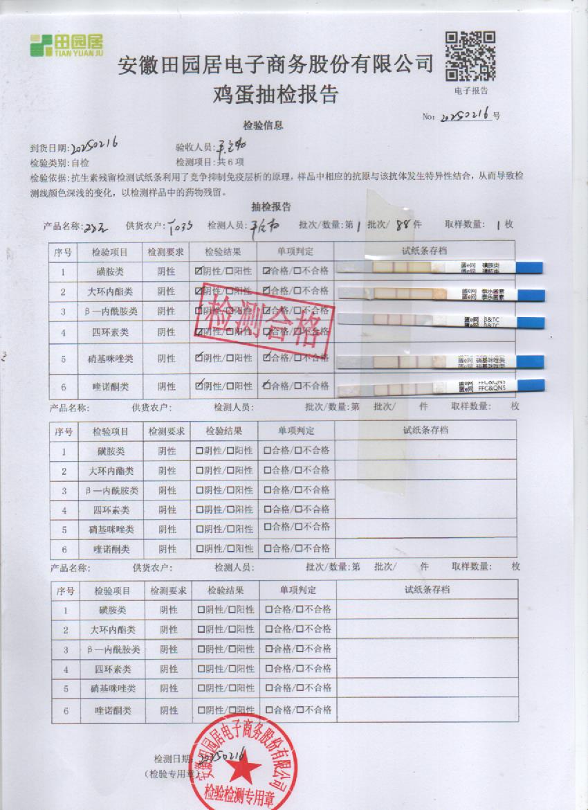 2025年2月16号鲜鸡蛋检测报告