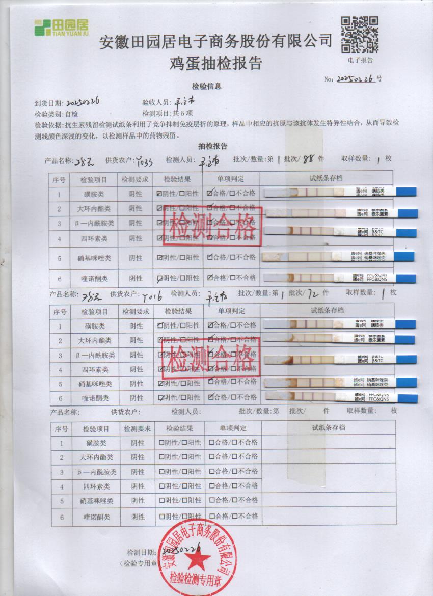 2025年2月26号鲜鸡蛋检测报告