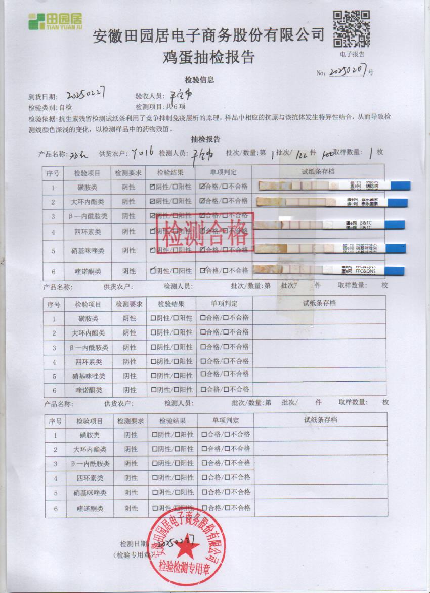 2025年2月26号鲜鸡蛋检测报告