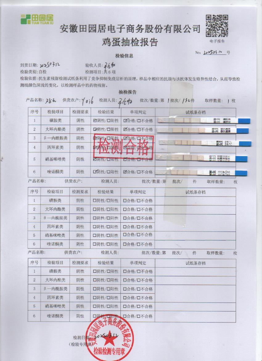 2025年3月16号鲜鸡蛋检测报告