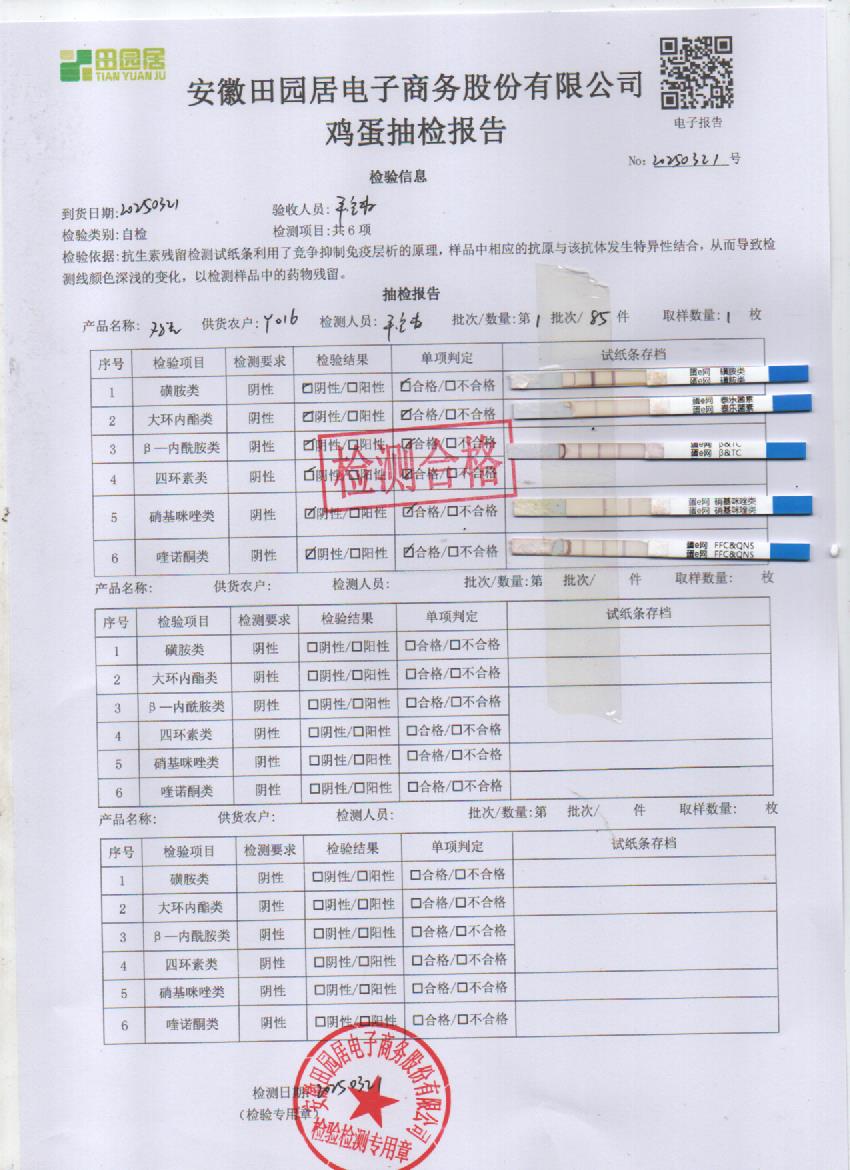 2025年3月21号鲜鸡蛋检测报告