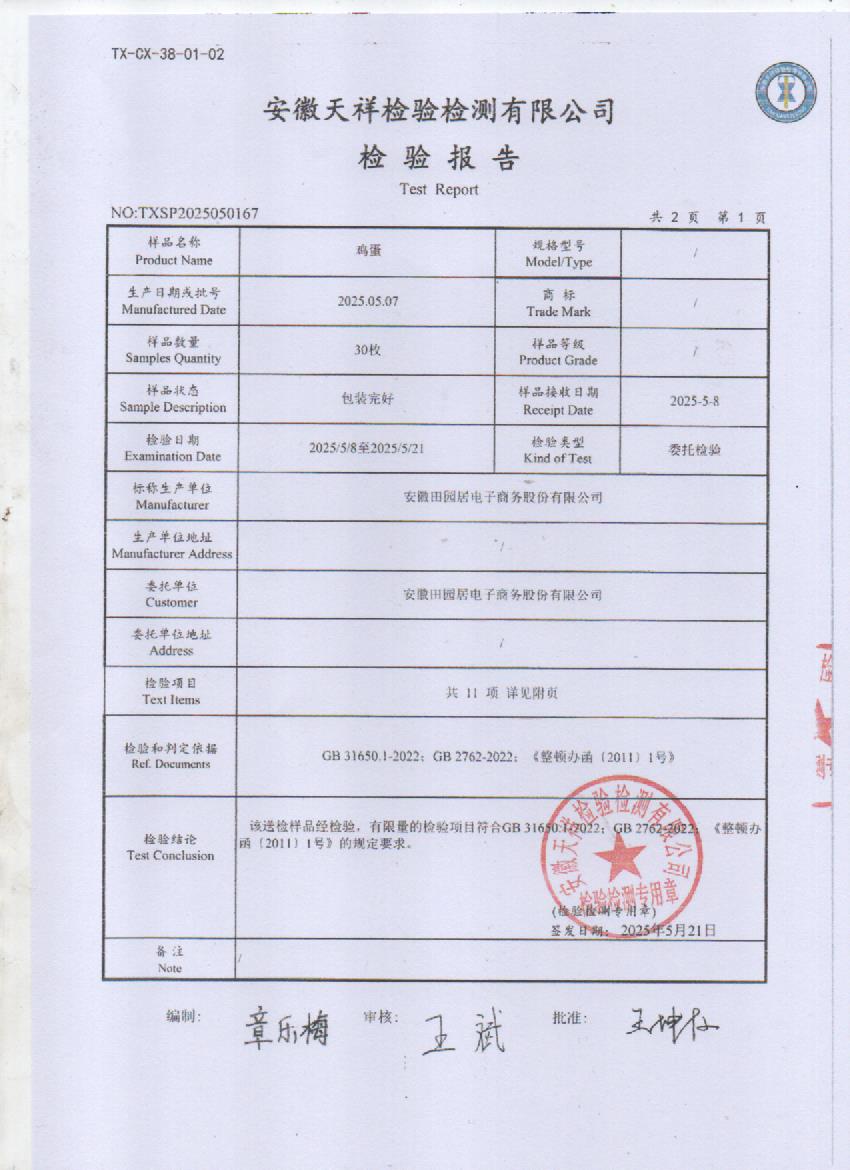 2025年6月11号鲜鸡蛋检测报告