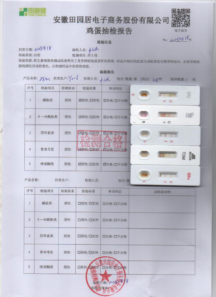 2025年8月18号鲜鸡蛋检测报告