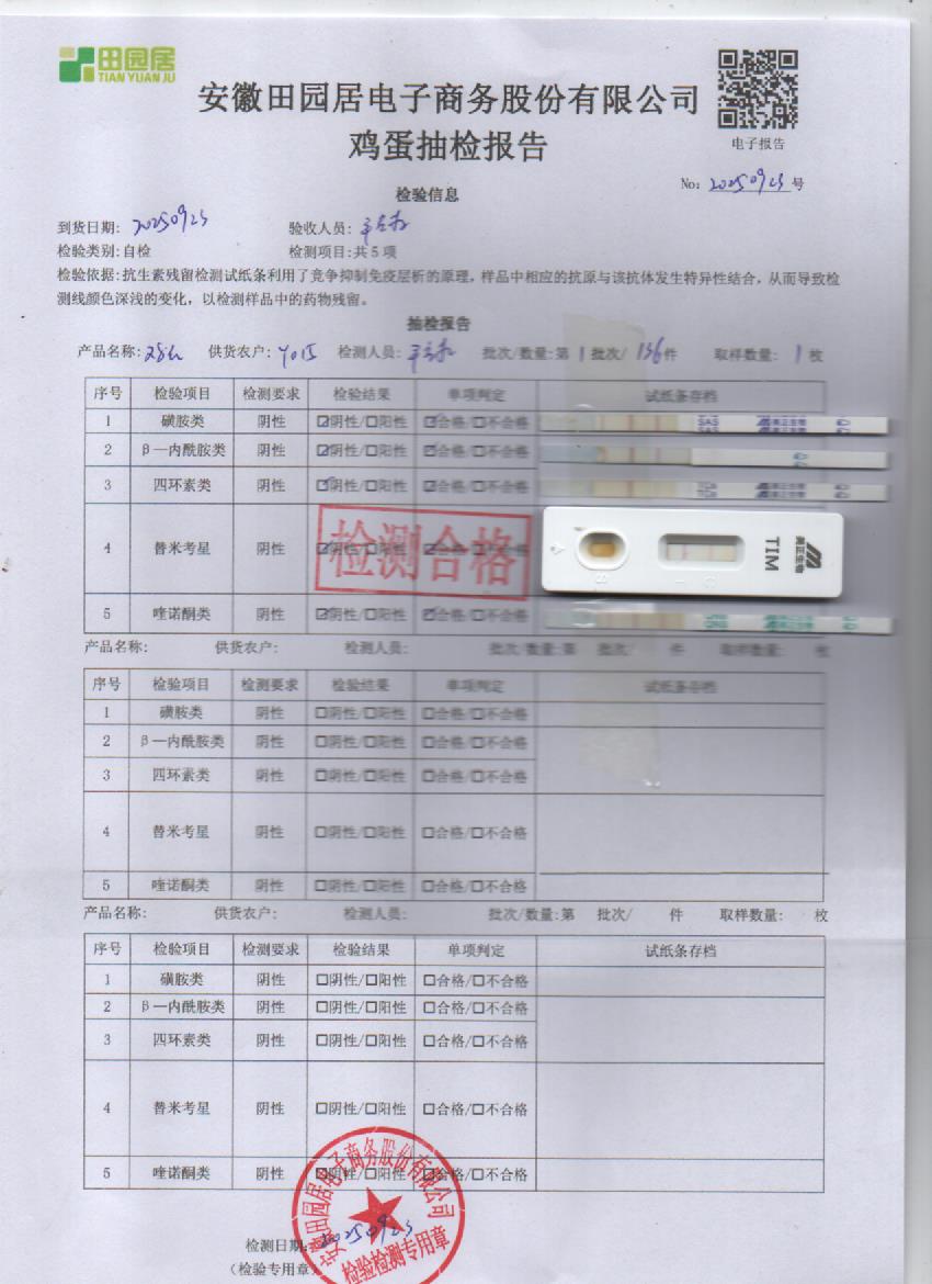 2025年9月24号鲜鸡蛋检测报告