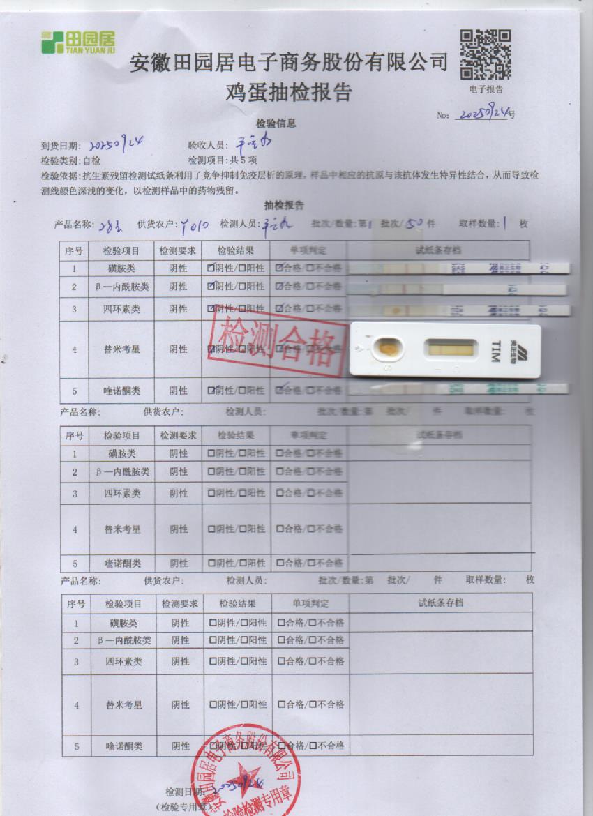 2025年9月24号鲜鸡蛋检测报告