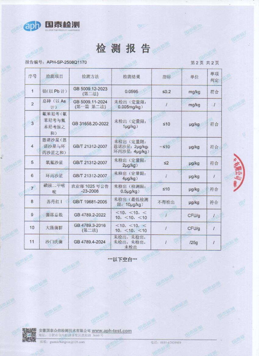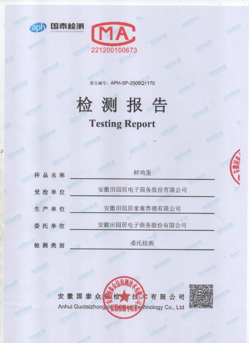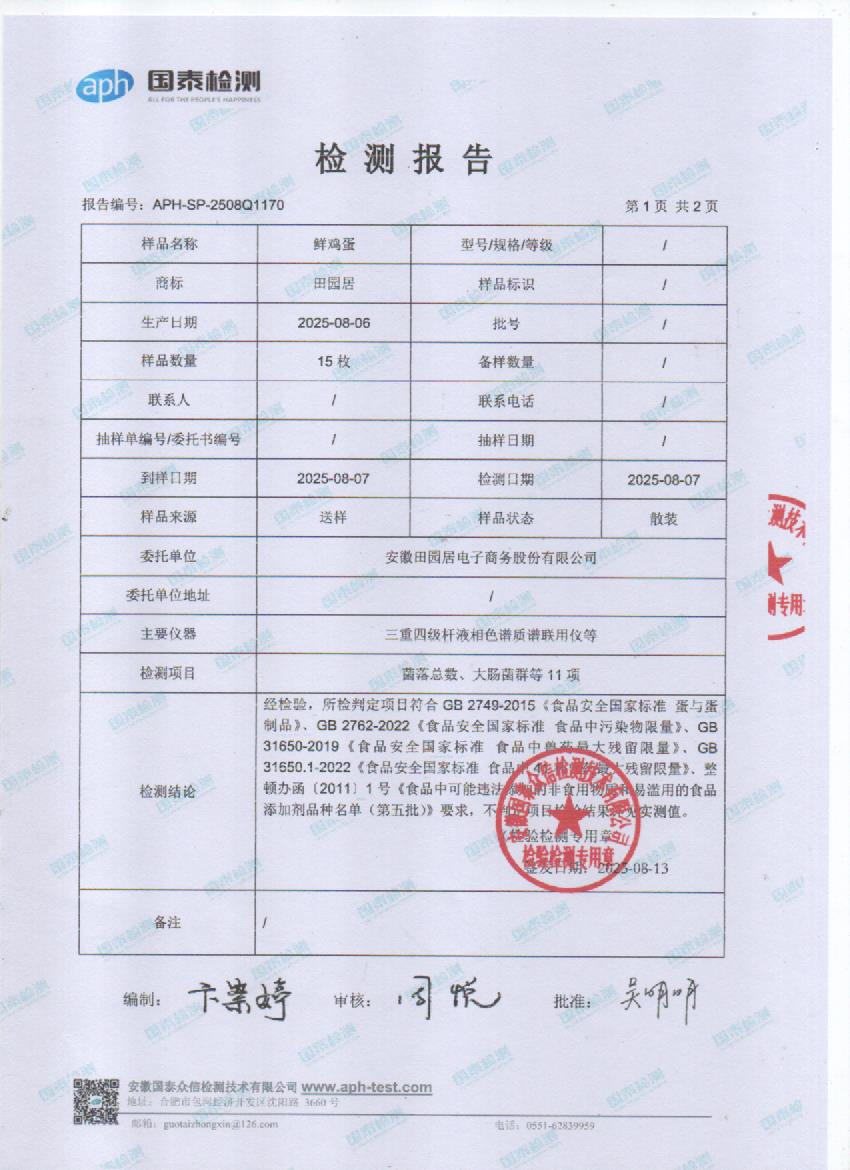 2025年8月份鲜鸡蛋检测报告