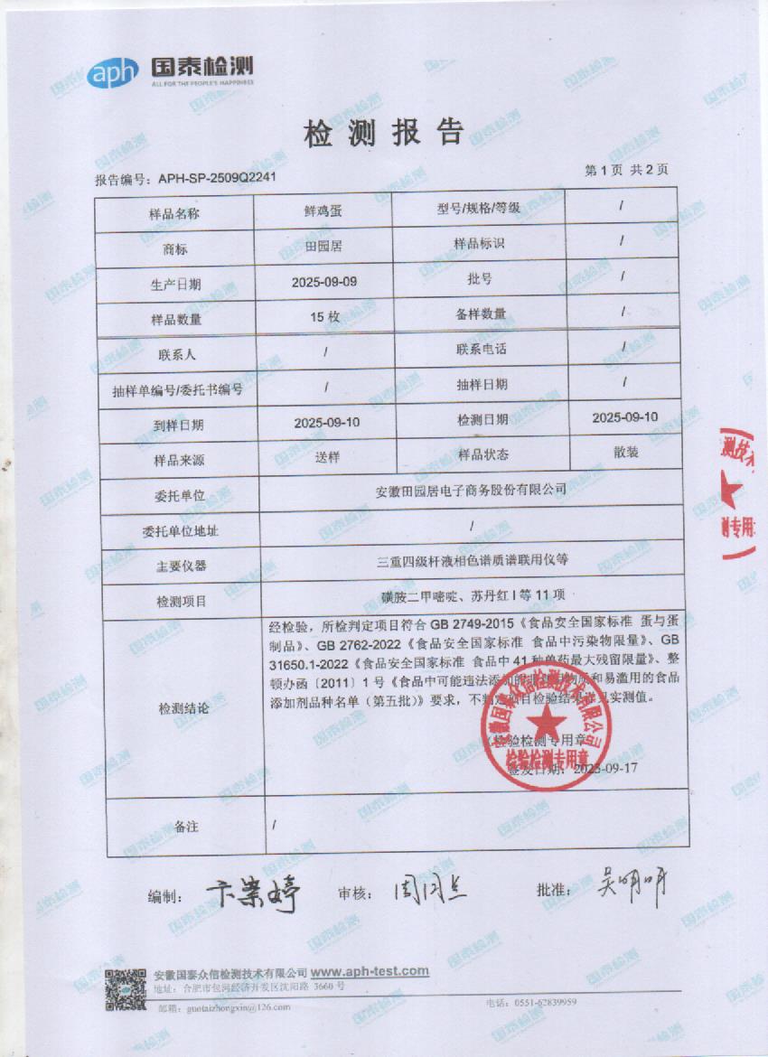 2025年9月鲜鸡蛋检测报告
