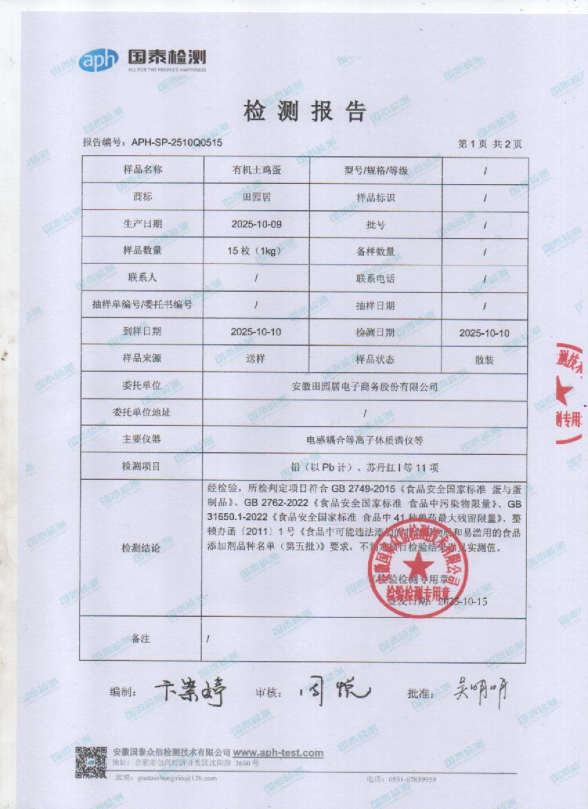 2025年10月鲜鸡蛋检测报告
