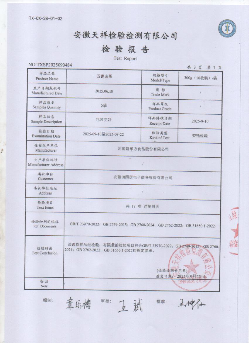 2025年6月份五香卤蛋检测报告