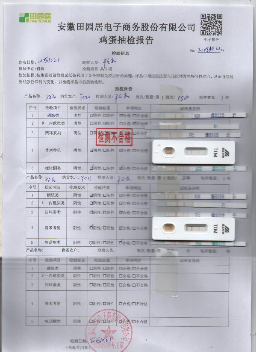 2025年10月21号鲜鸡蛋检测报告