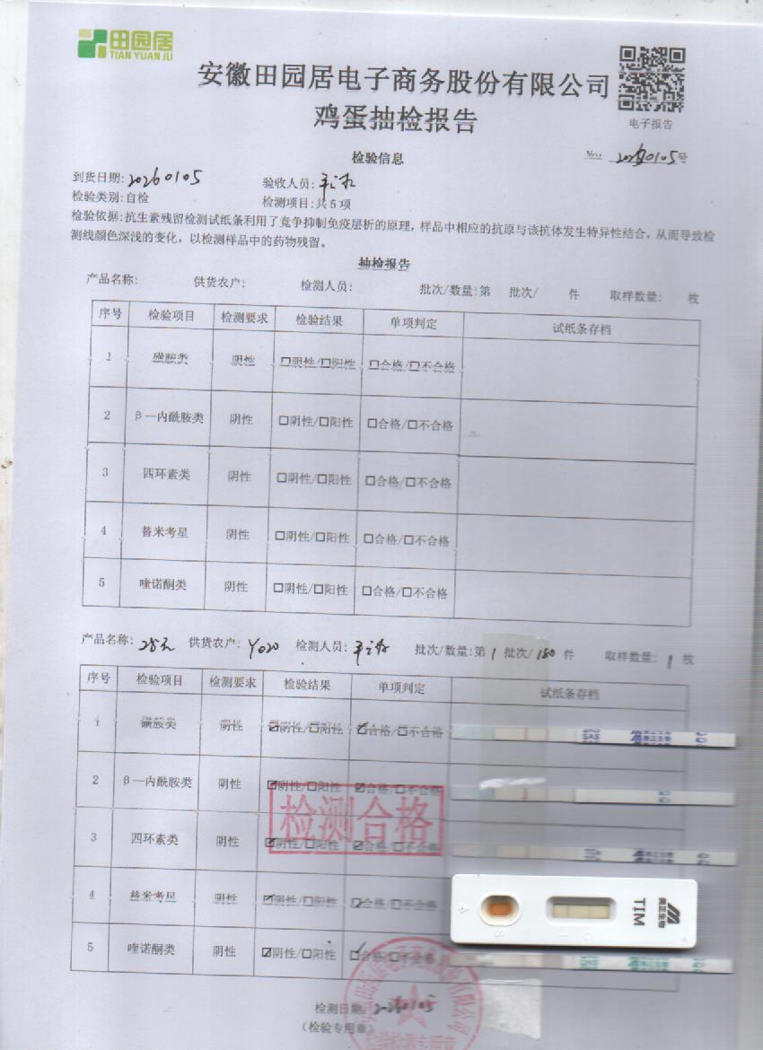2026年1月5号鲜鸡蛋检测报告