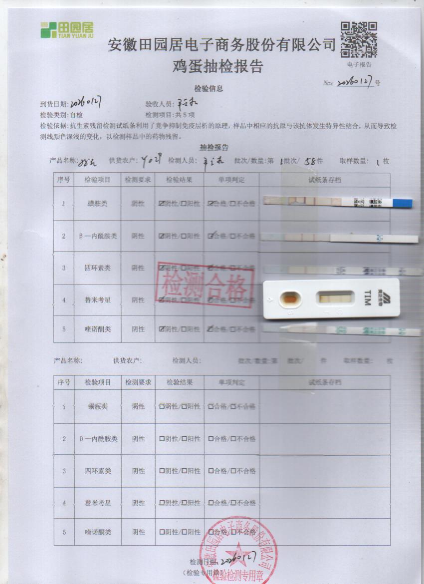 2026年1月29号鲜鸡蛋检测报告