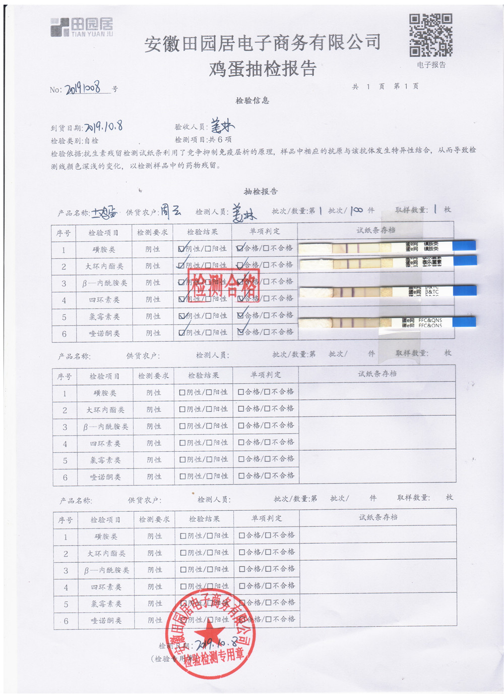 2019年10月8日鸡蛋自检报告