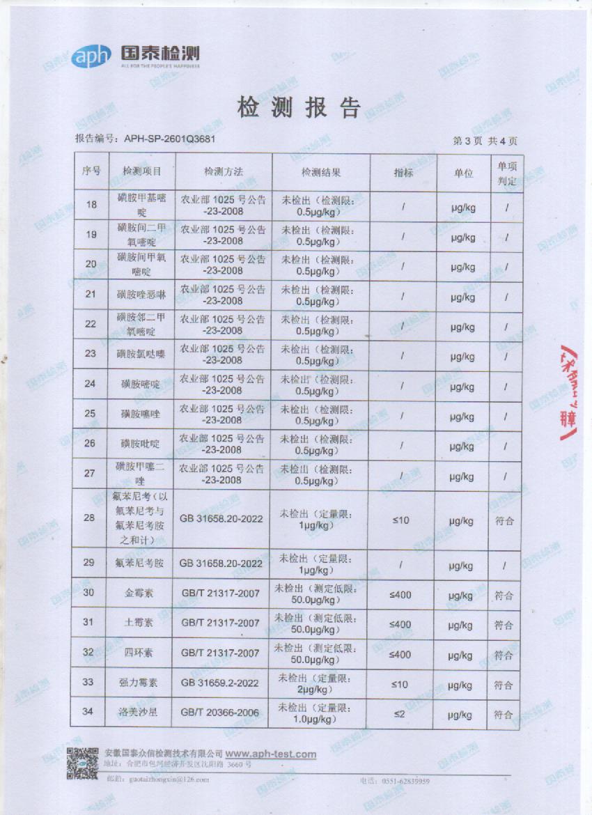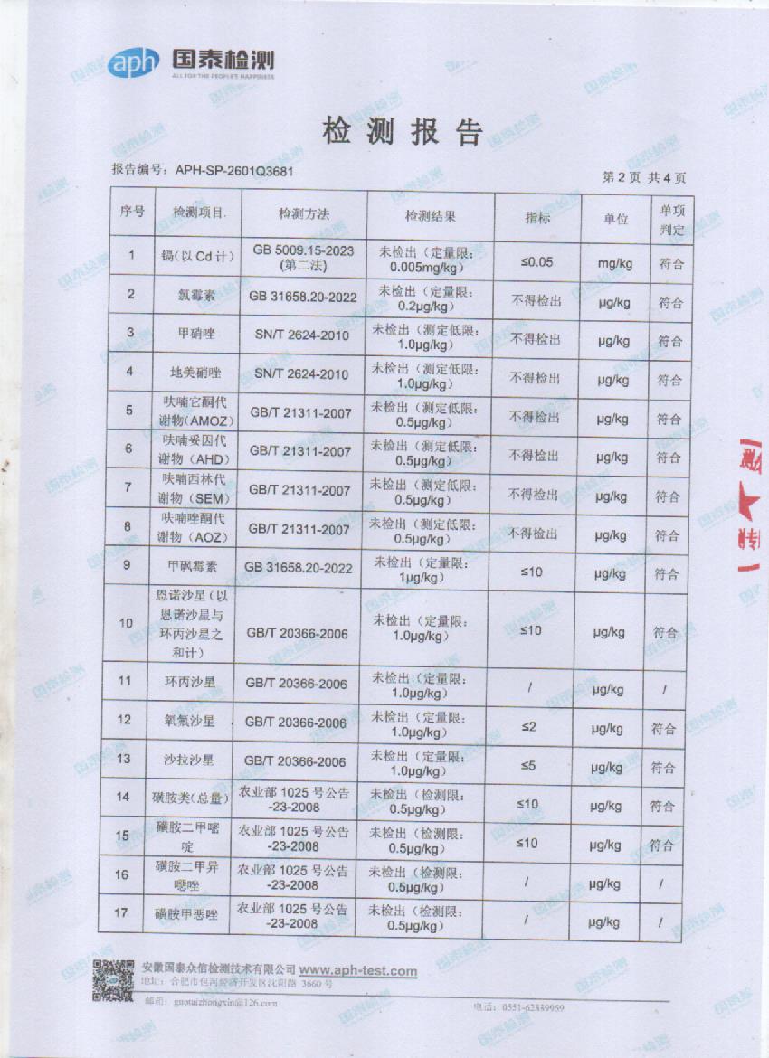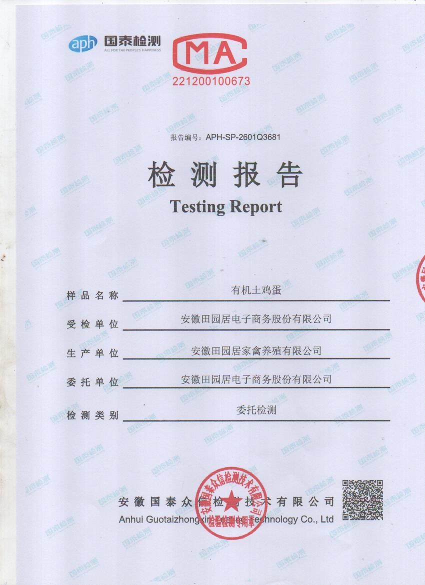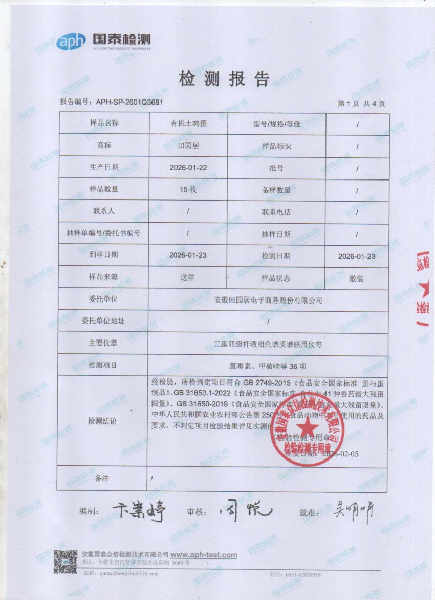 2026年1月份有机鸡蛋检测报告