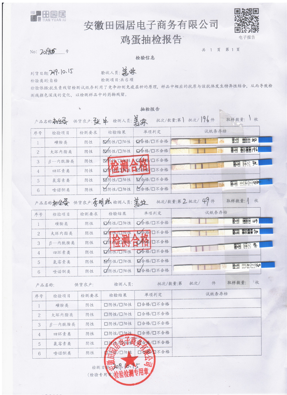 2019年10月15日鸡蛋自检报告
