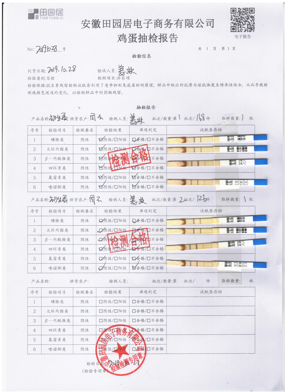 2019年10月28日鲜鸡蛋检测报告