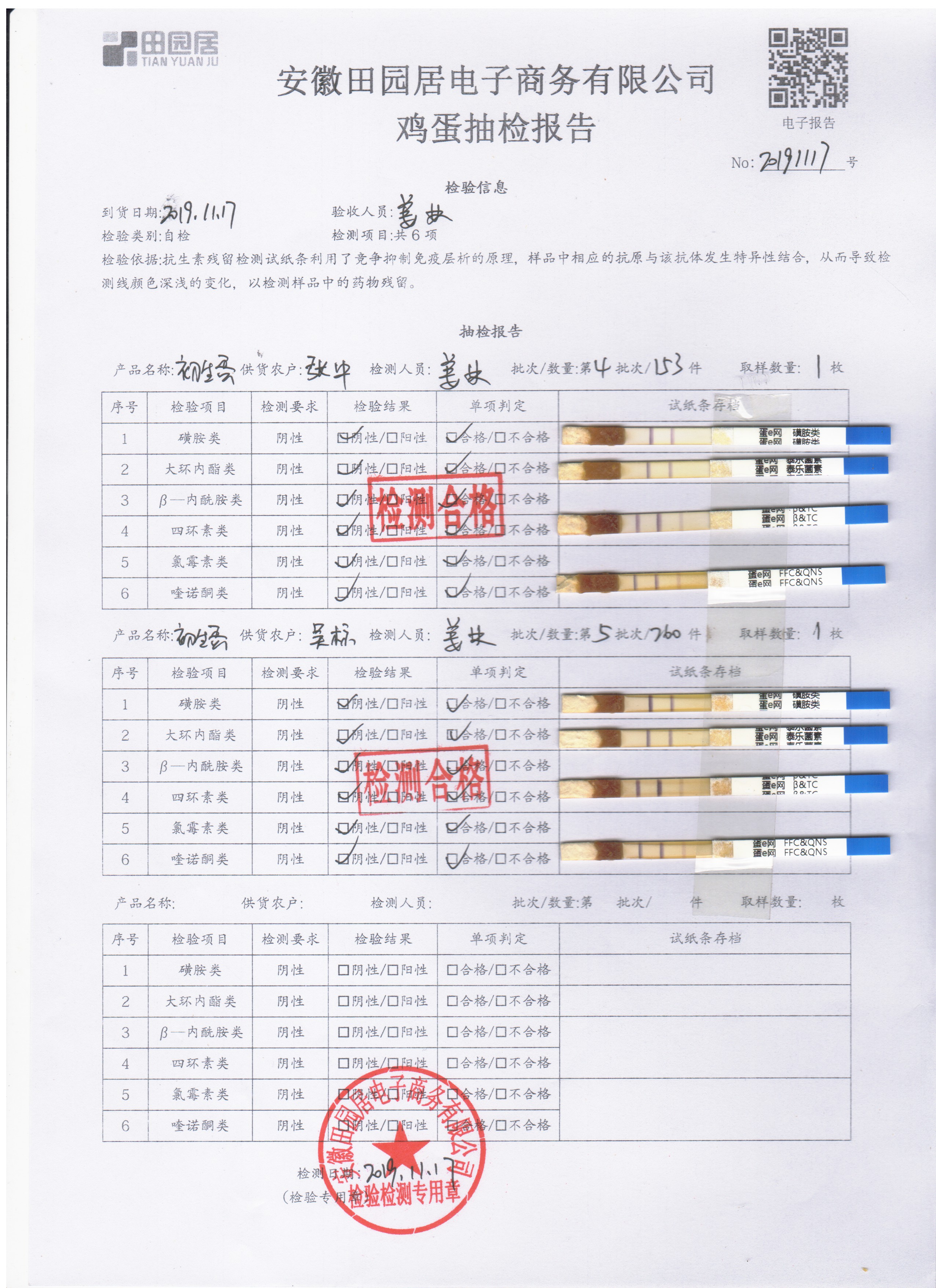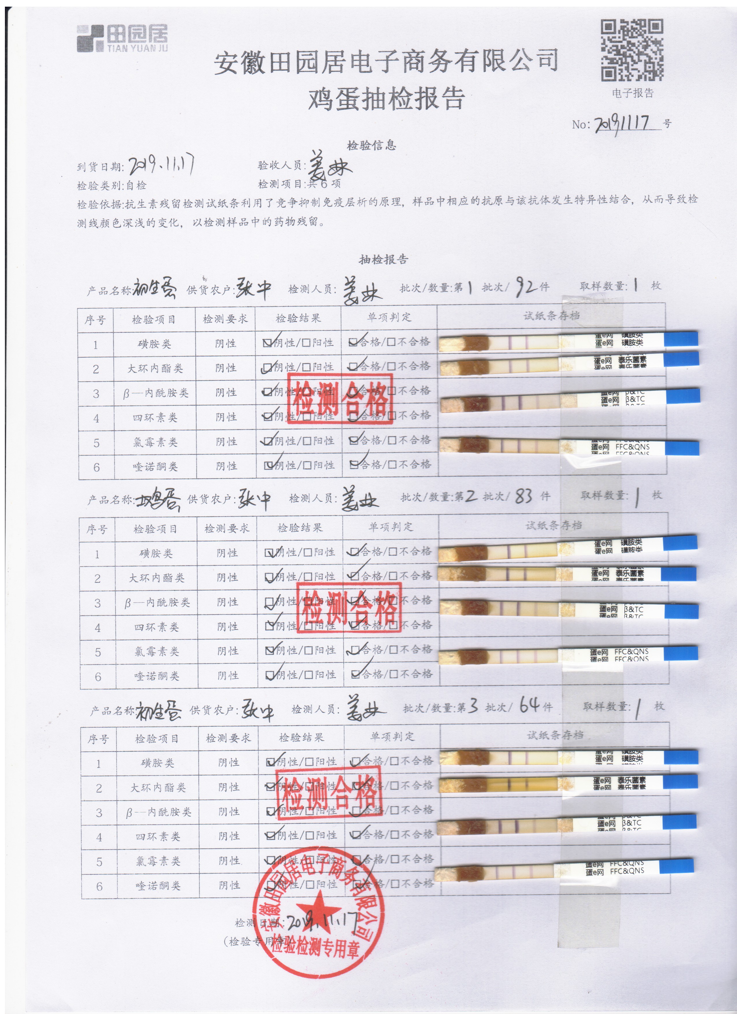 2019年11月17日鲜鸡蛋检测报告