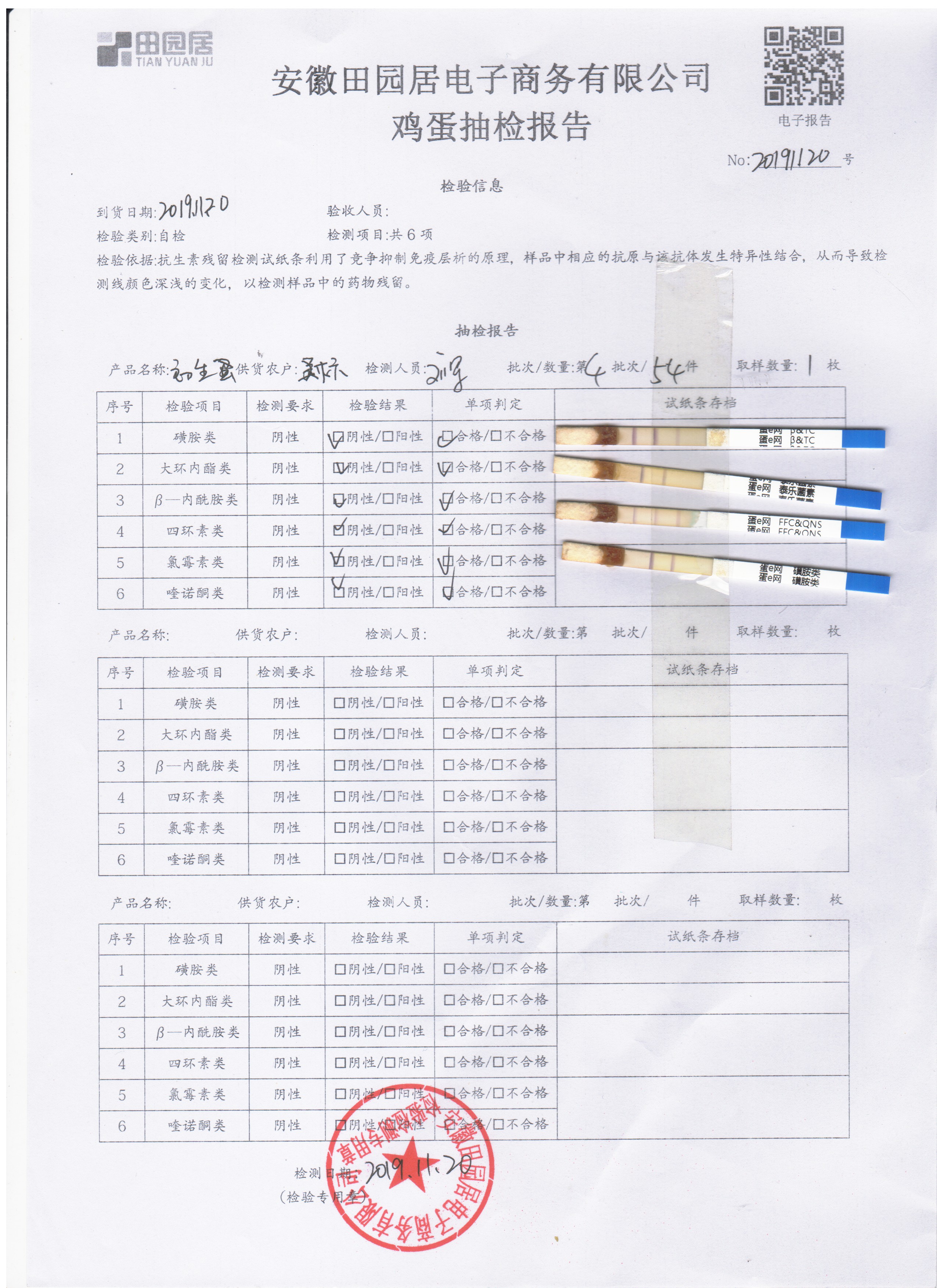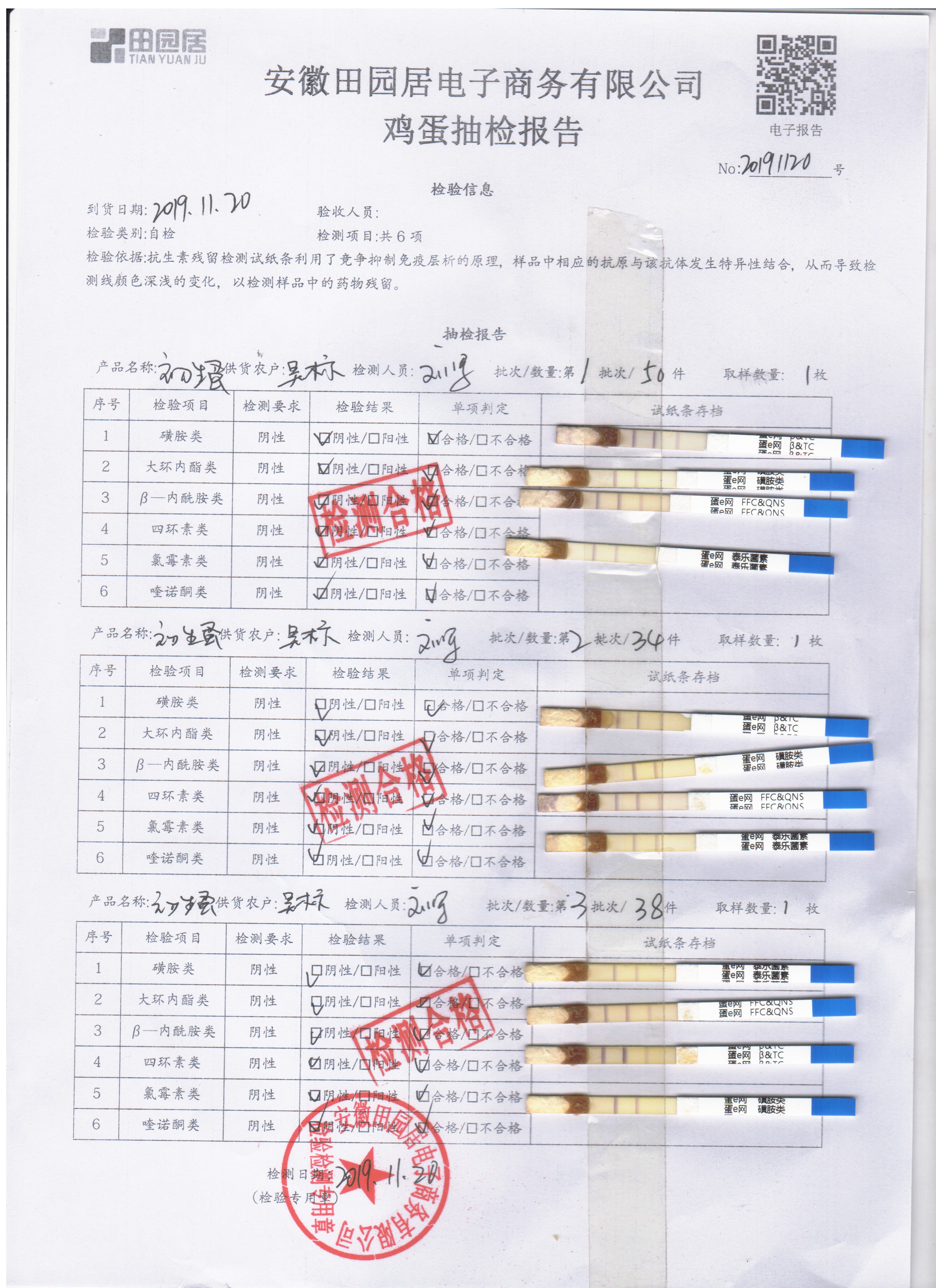 2019年11月20日鲜鸡蛋检测报告