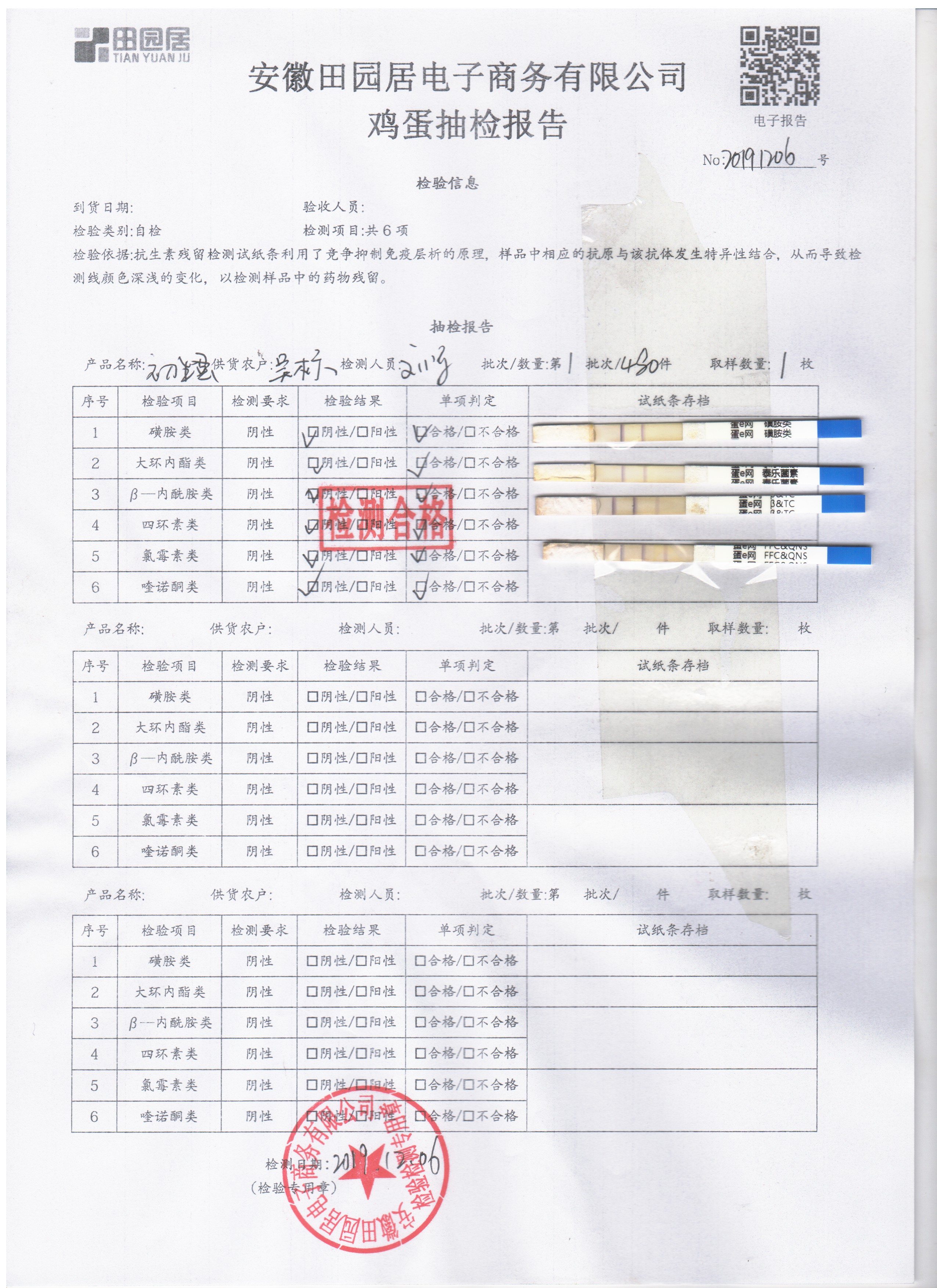 2019年12月6日鲜鸡蛋检测报告