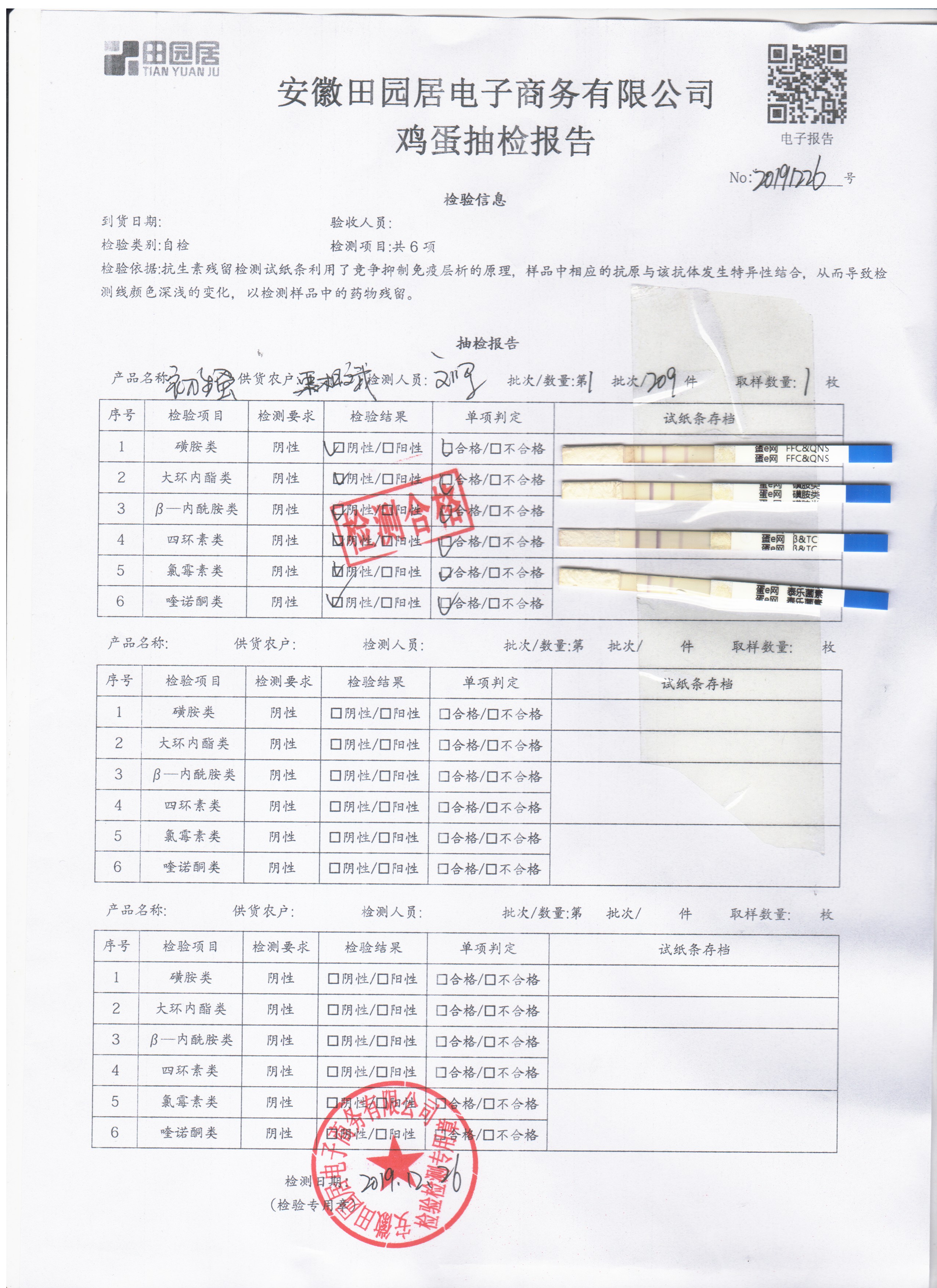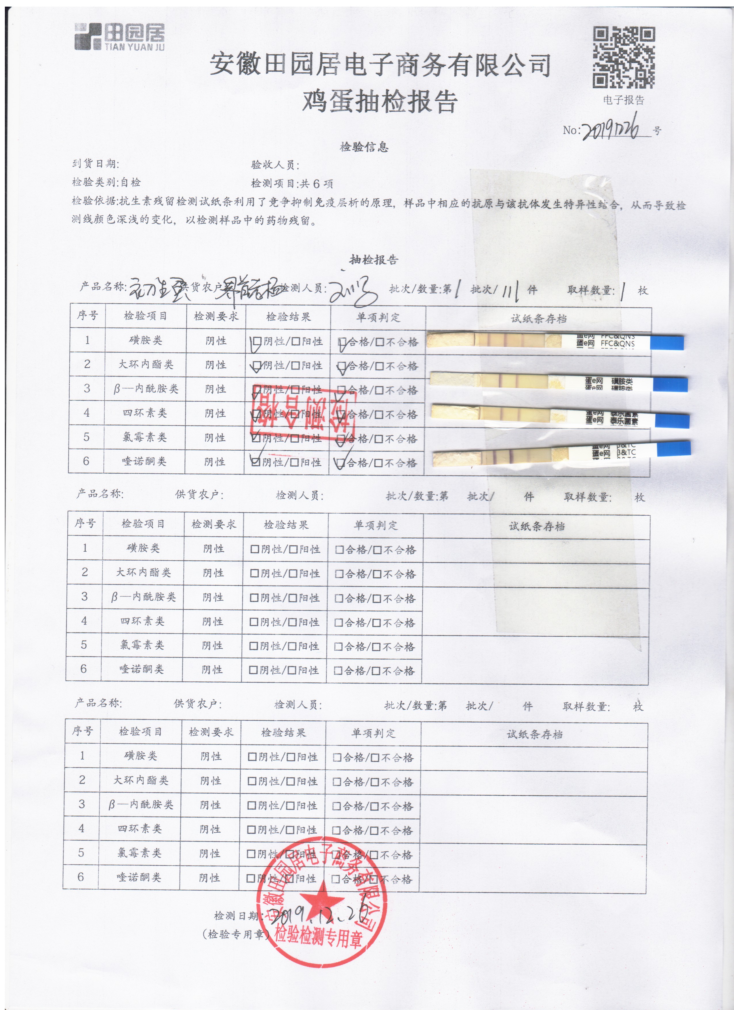 2019年12月26日鲜鸡蛋检测报告