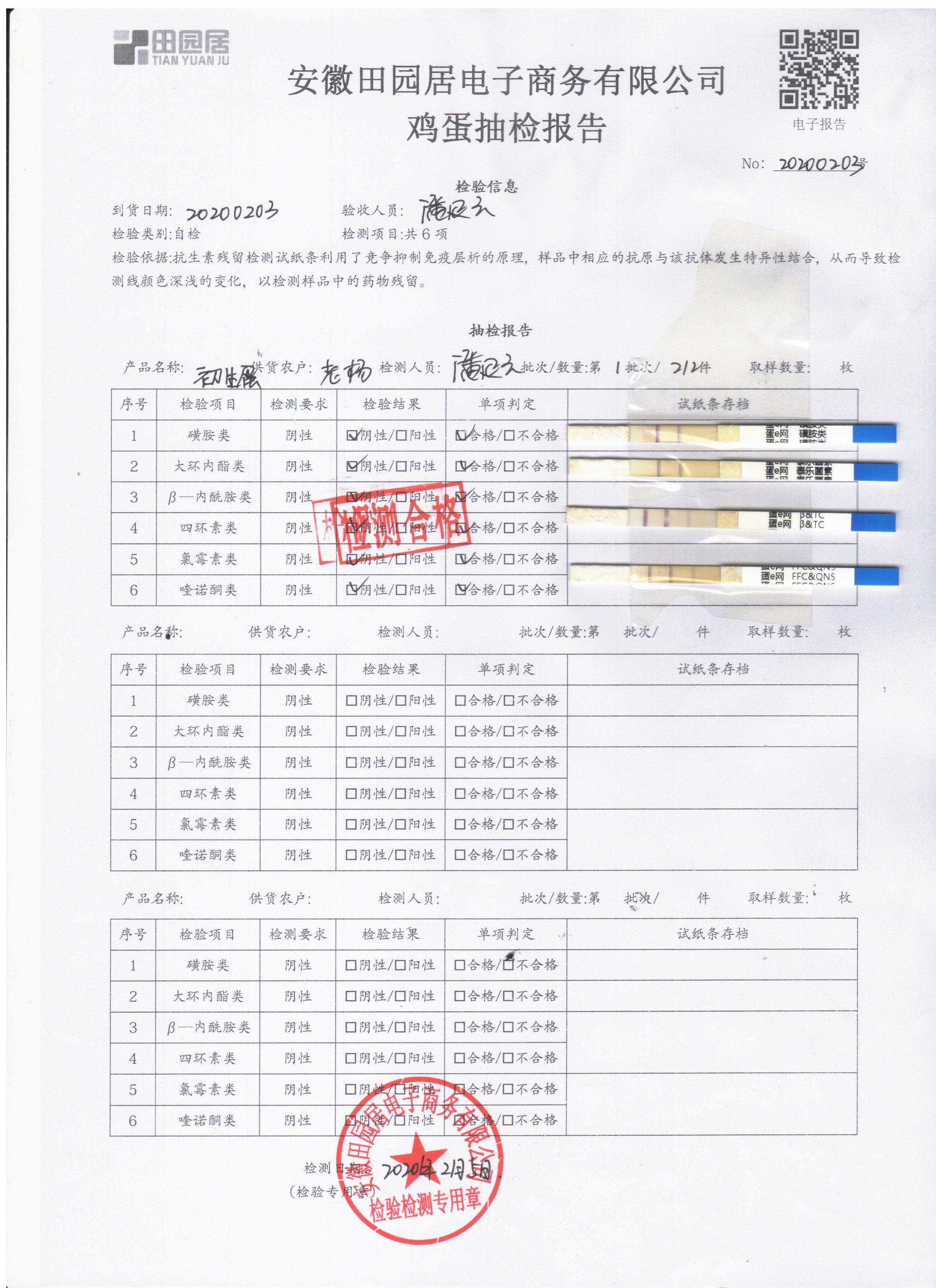 2020年2月1日鲜鸡蛋检测报告