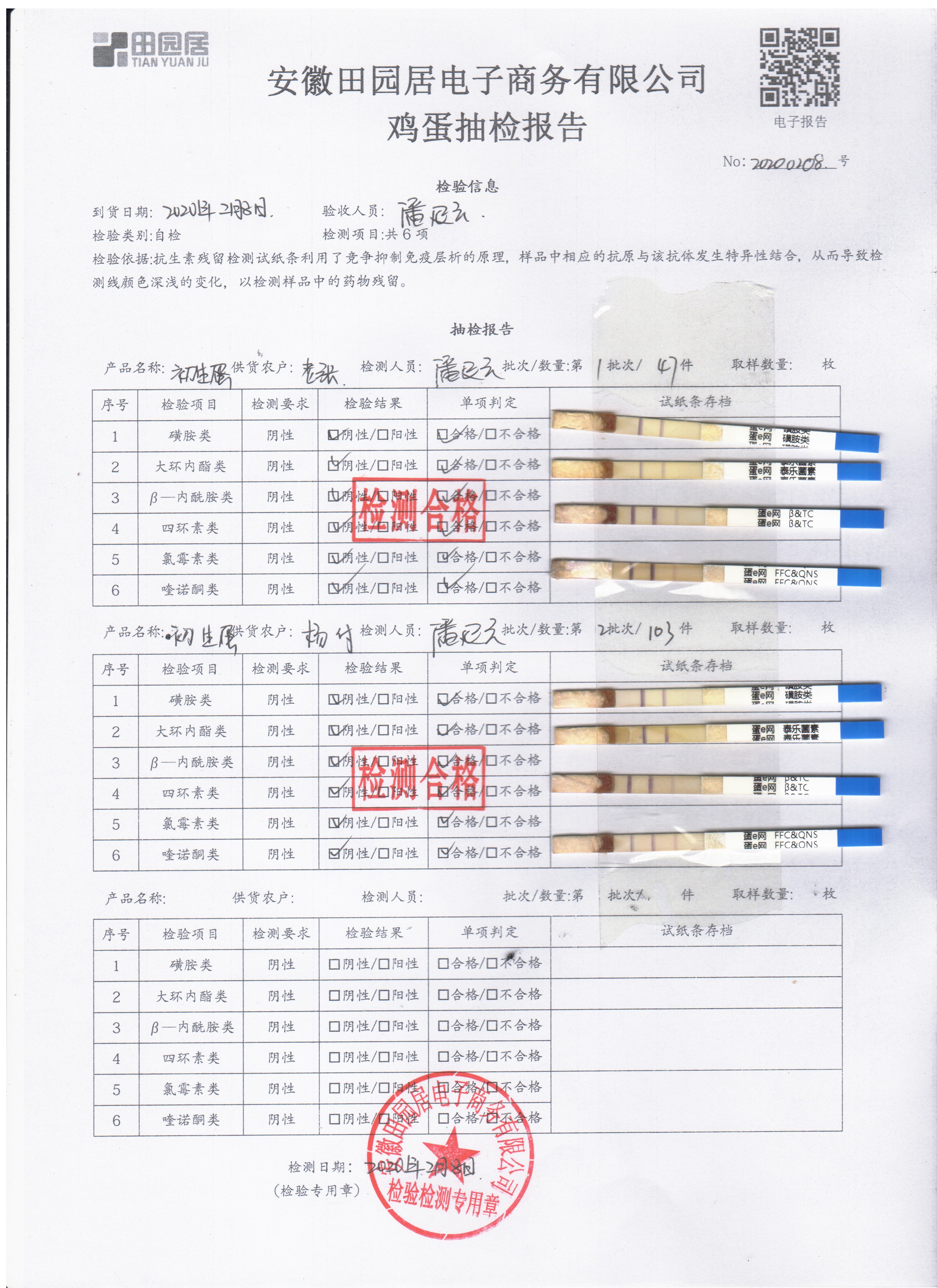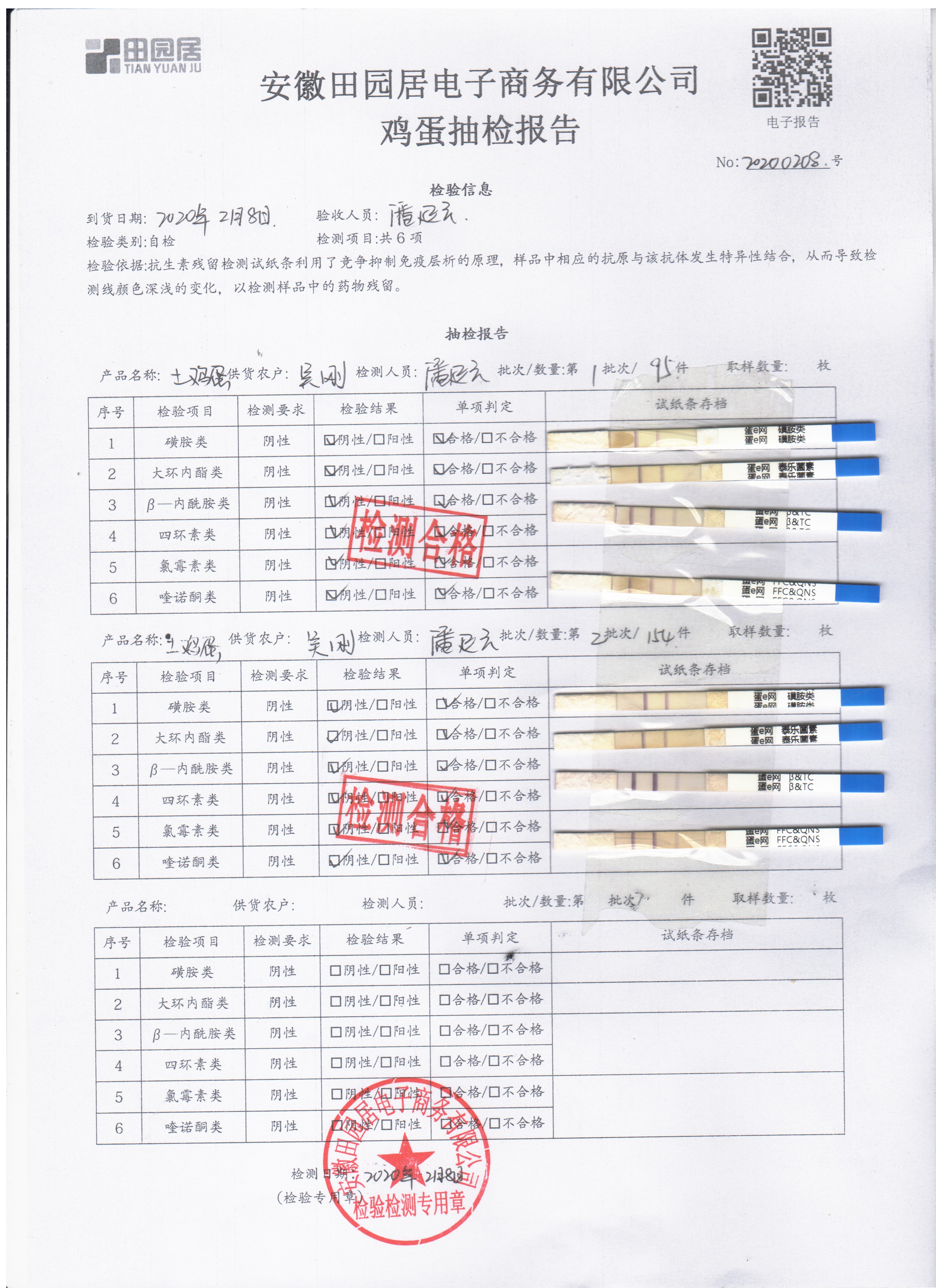 2020年2月8日鲜鸡蛋检测报告