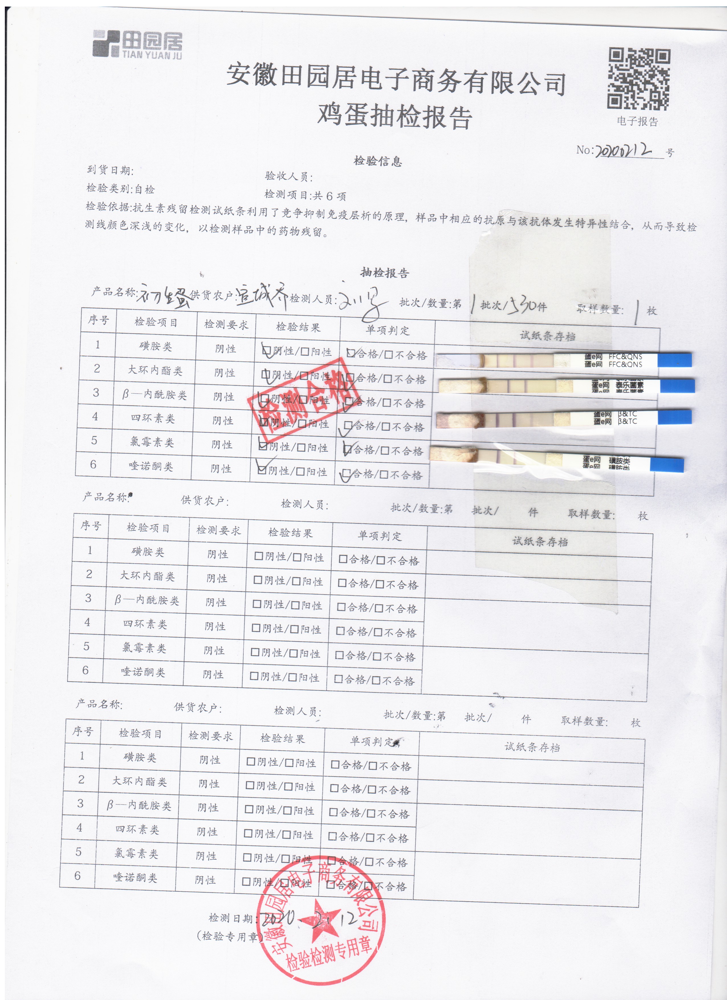 2020年2月12日鲜鸡蛋检测报告