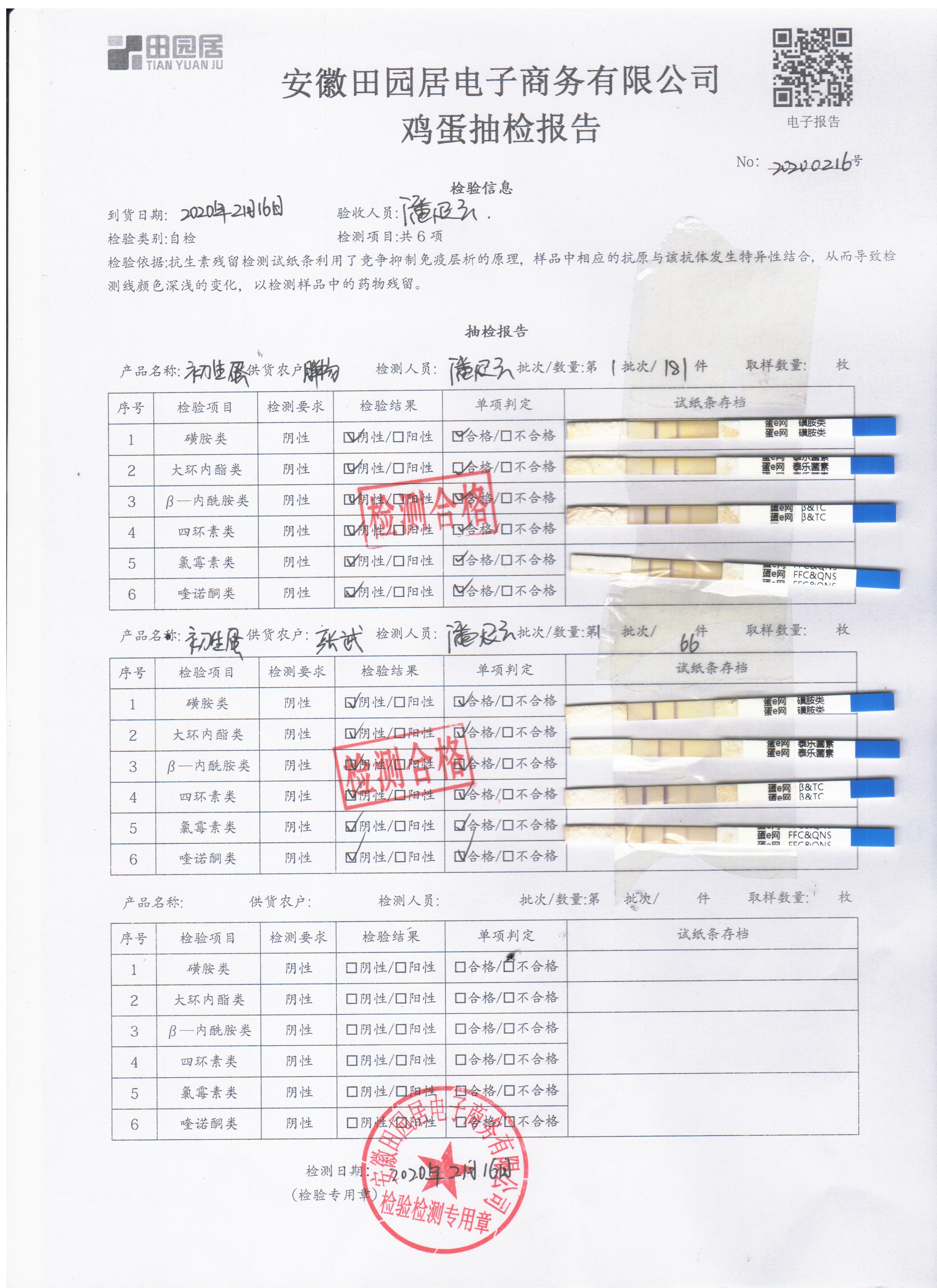 2020年2月16日鲜鸡蛋检测报告