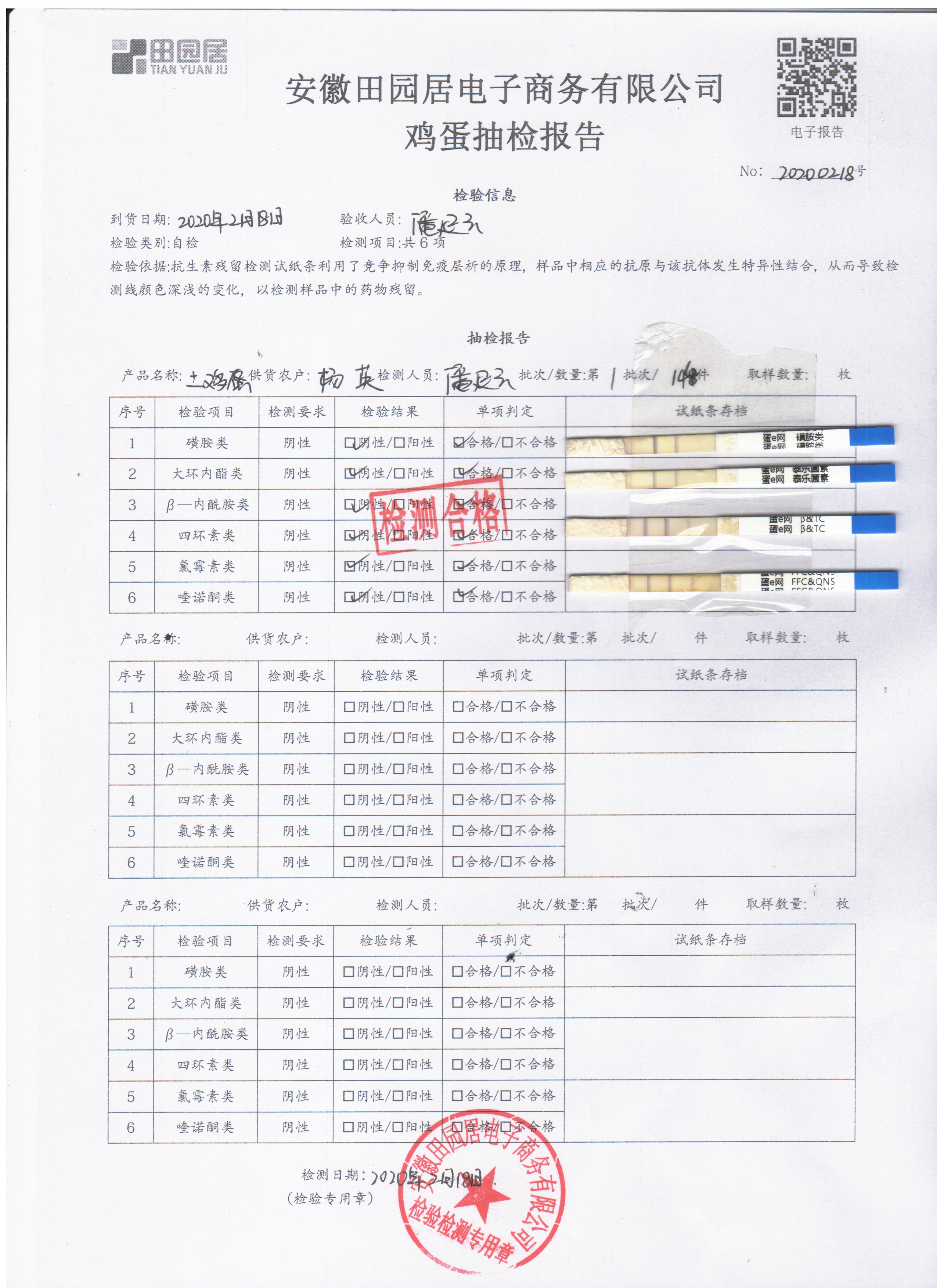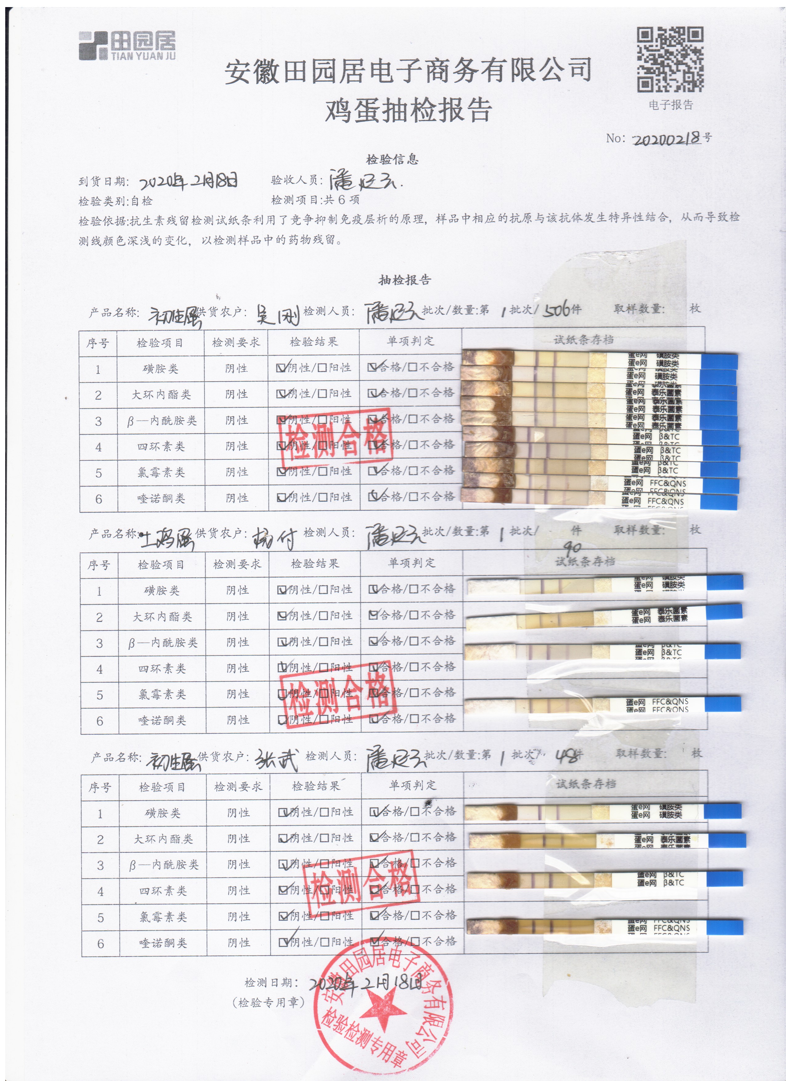 2020年2月18日鲜鸡蛋检测报告