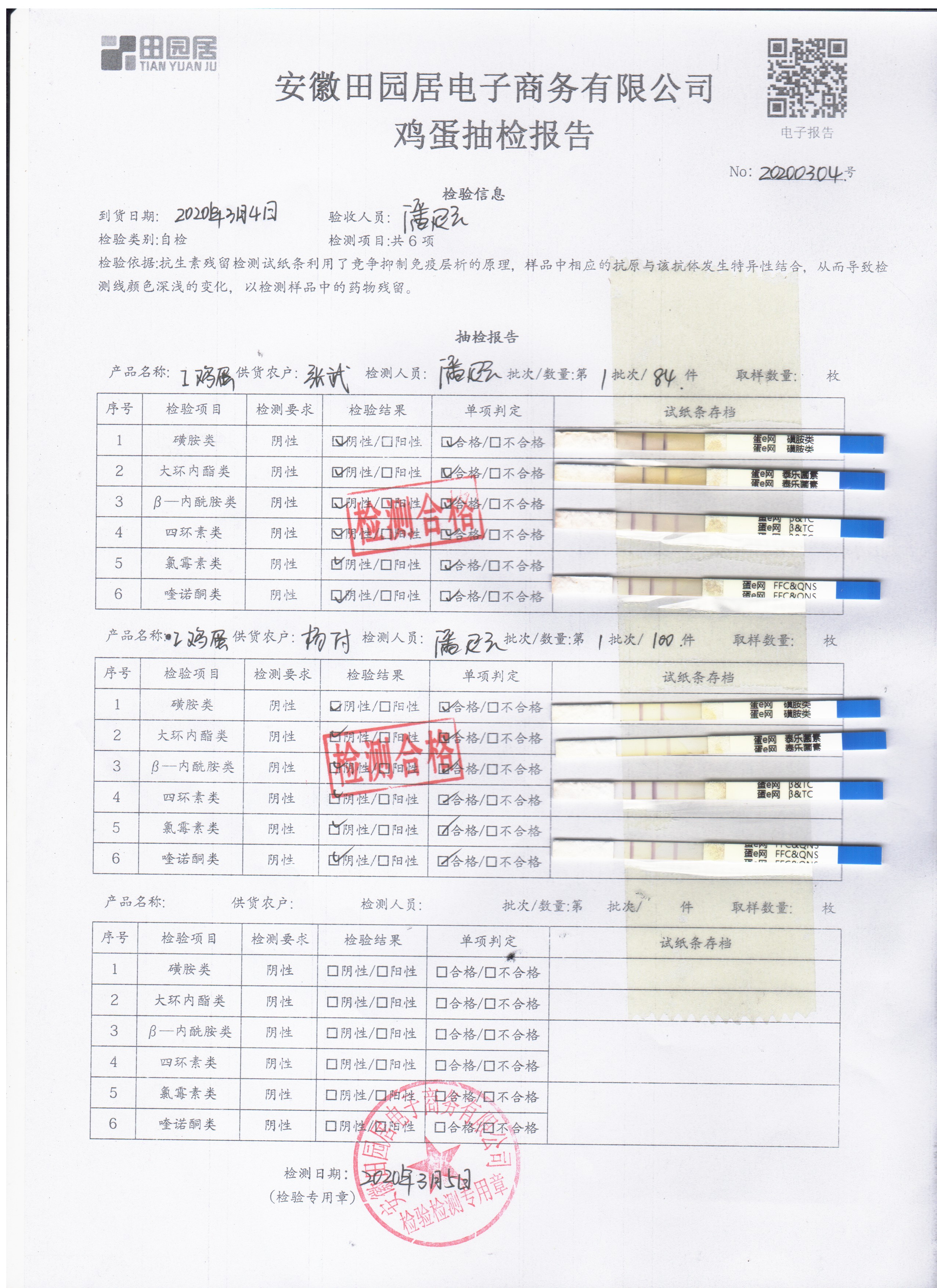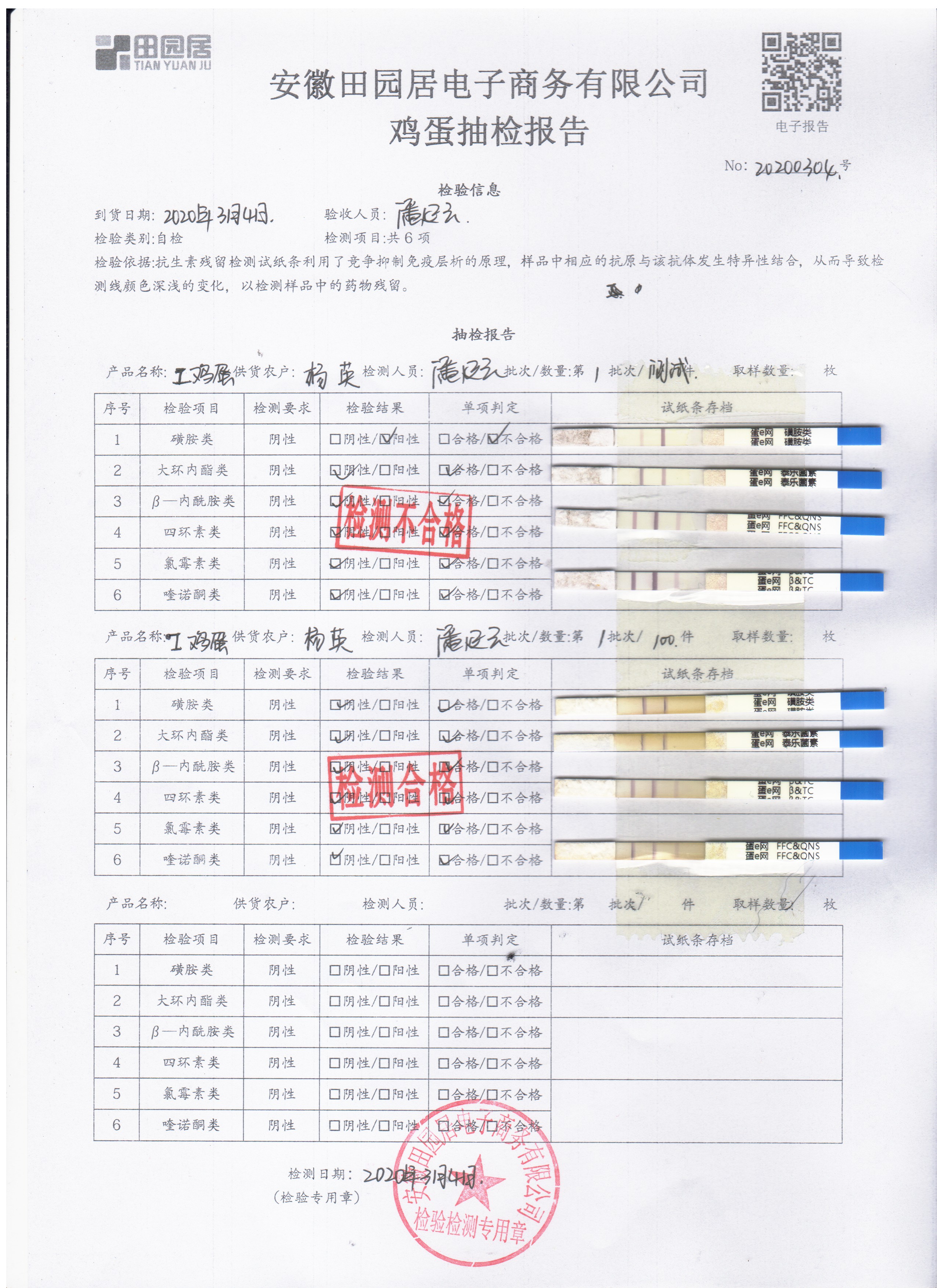 2020年3月4日鲜鸡蛋检测报告